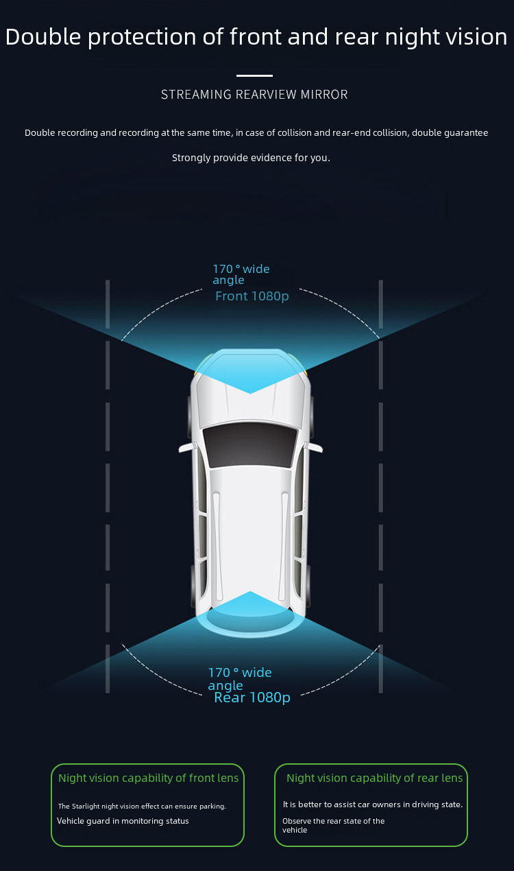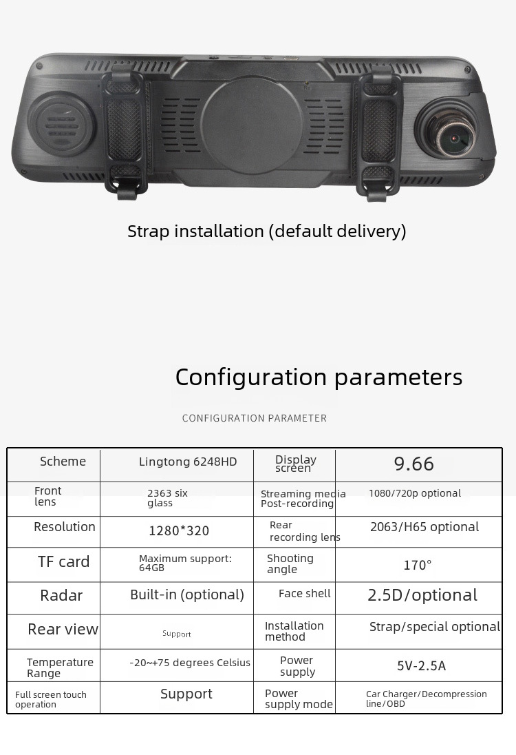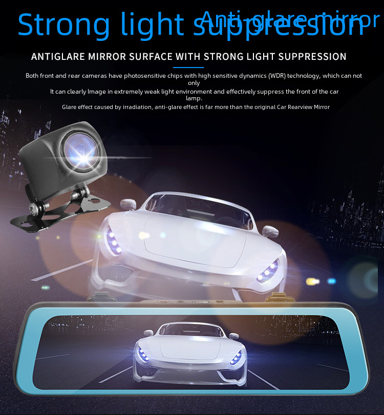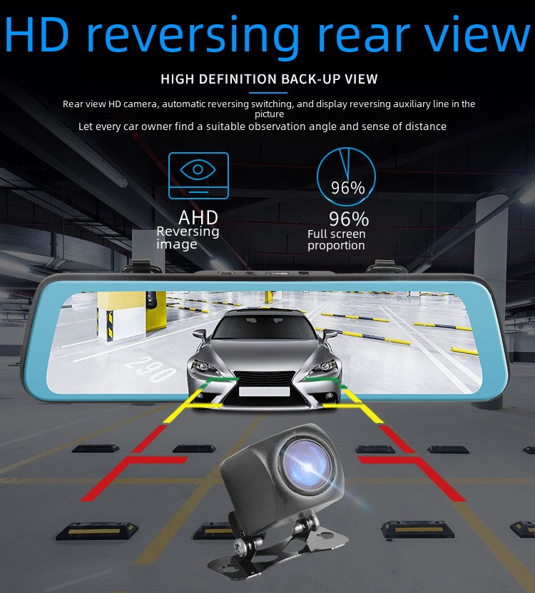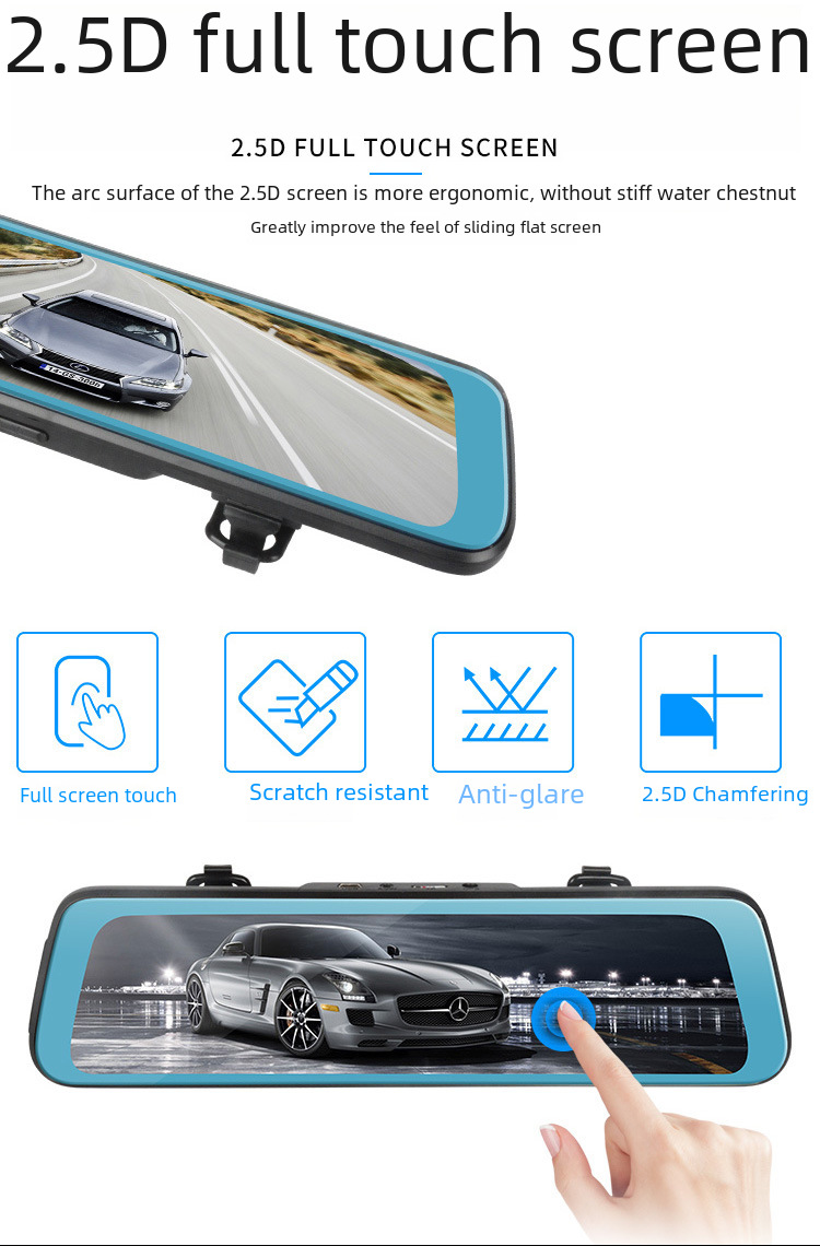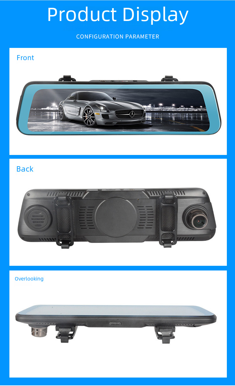 Car streaming media 10 inch driving recorder dual recording HD rearview mirror dashcam cross border wifi gps