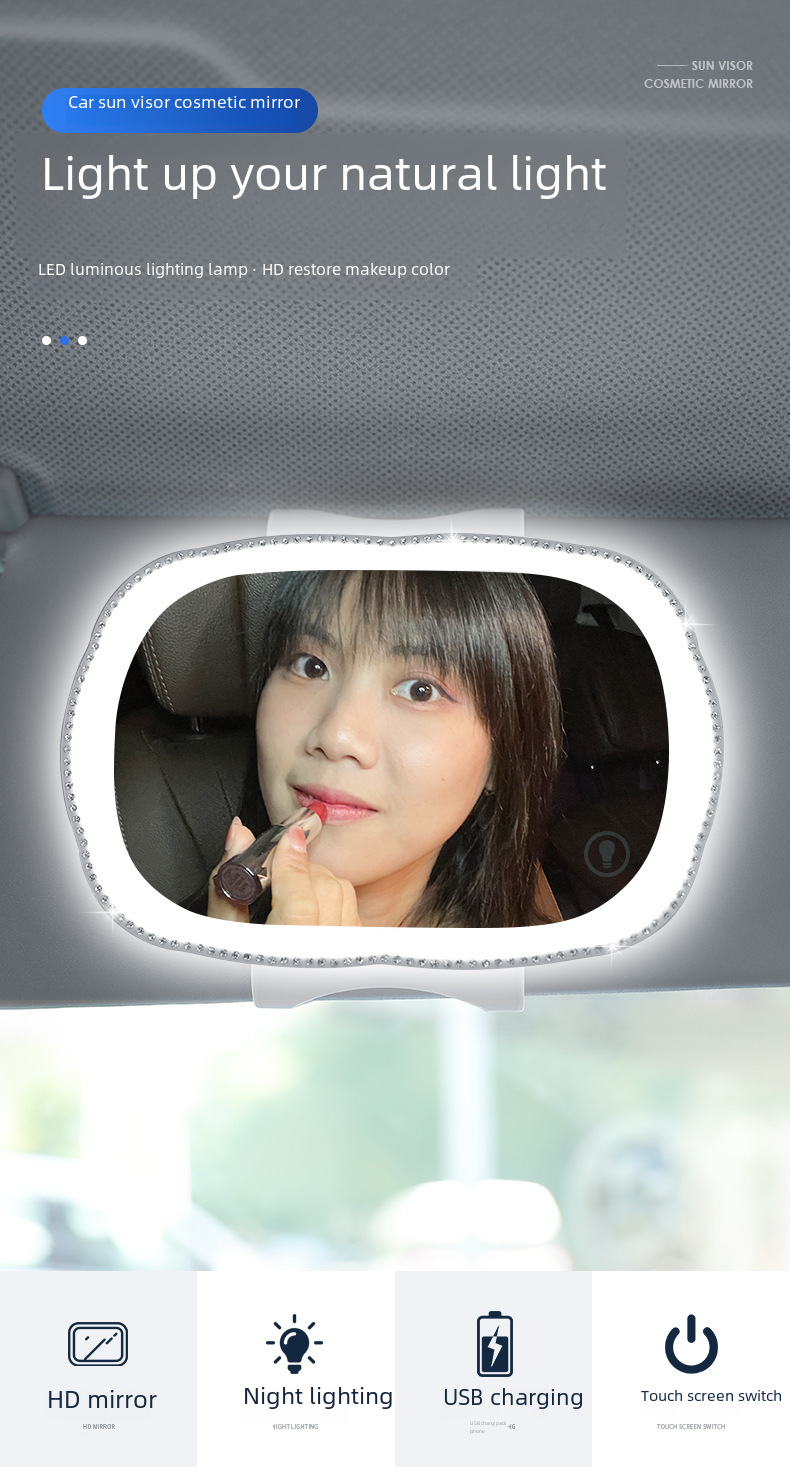Car sun visor HD makeup mirror car co pilot shatterproof LED light touch goddess sun visor makeup mirror