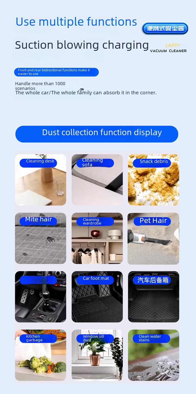 Car vacuum cleaner handheld wireless super large suction car household blowing and suction integrated mini desktop vacuum cleaner
