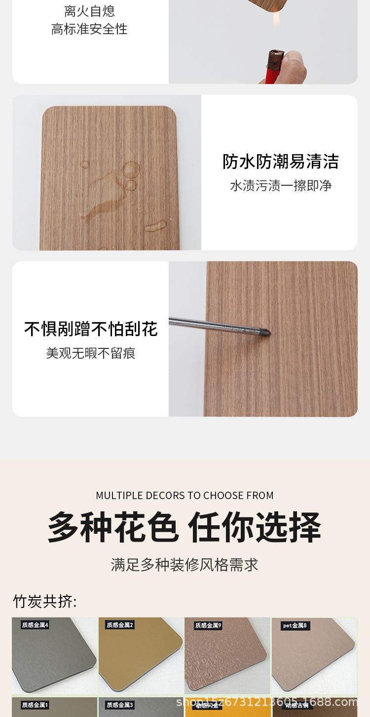 Carbon crystal plate panel bamboo charcoal wood metal plate carbon rock plate wood veneer mirror panel Integrated Plate seamless decorative wire plate