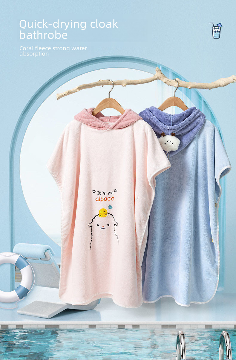 Cartoon Children s Bath Towel Cloak with Hood Cute Thickened Bath Swimming Soft Water Absorbing Quick drying Wearing Hooded Bathrobe