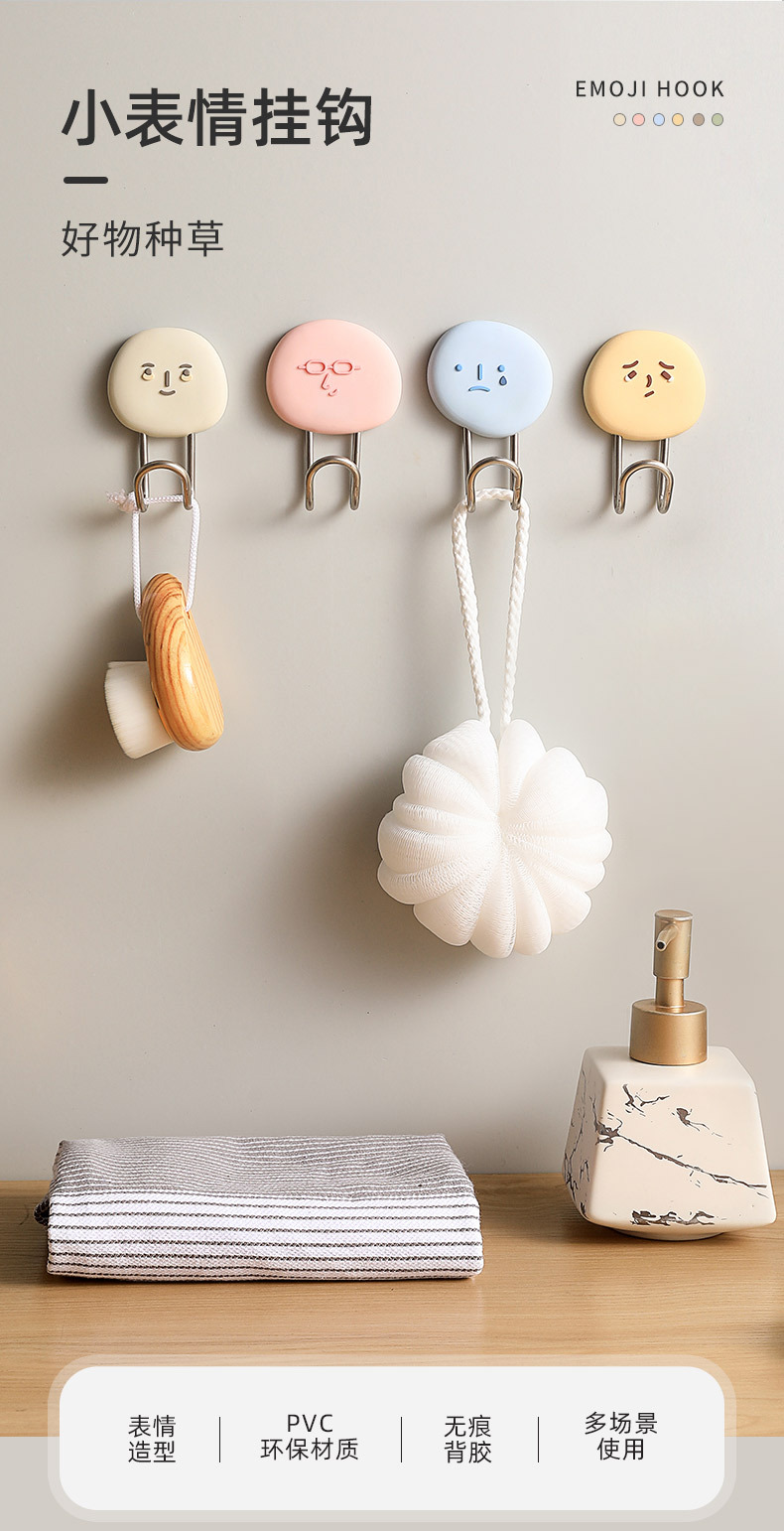 Cartoon hook strong load bearing non perforated non trace glue bathroom kitchen door back glue paste hook