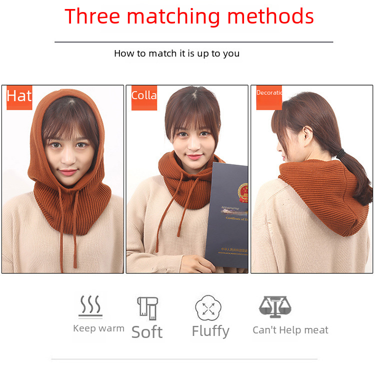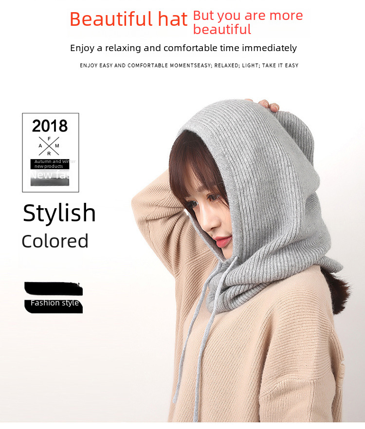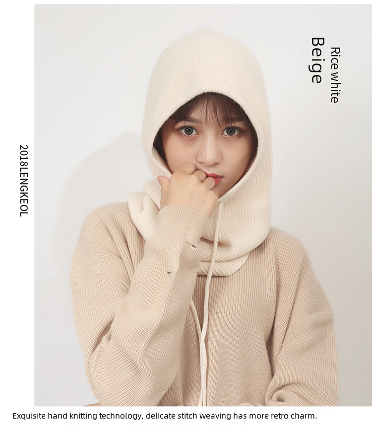 Cashmere Wool Yarn Autumn and Winter Men s and Women s Knitted Toe Hat Cervical Neck Protection Tuff Ears Neck Thickened Warm