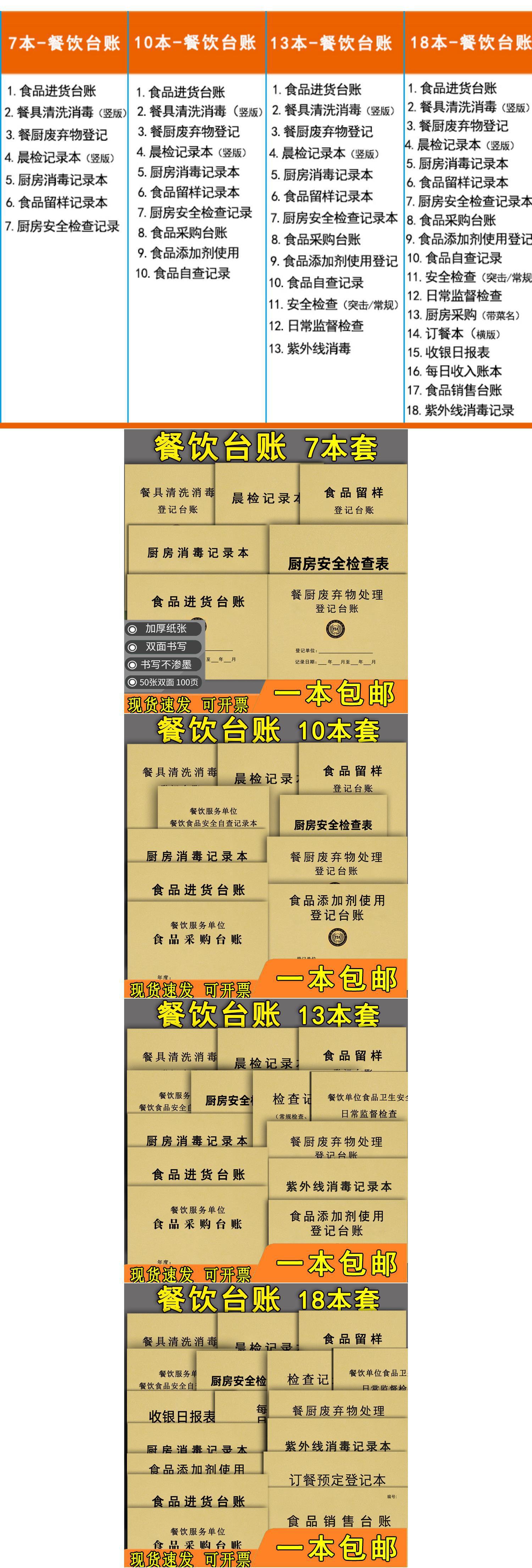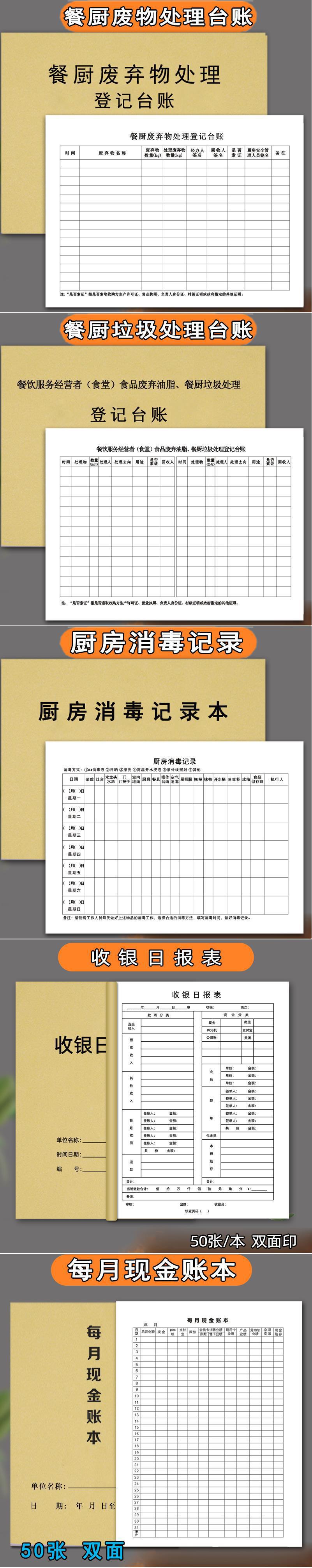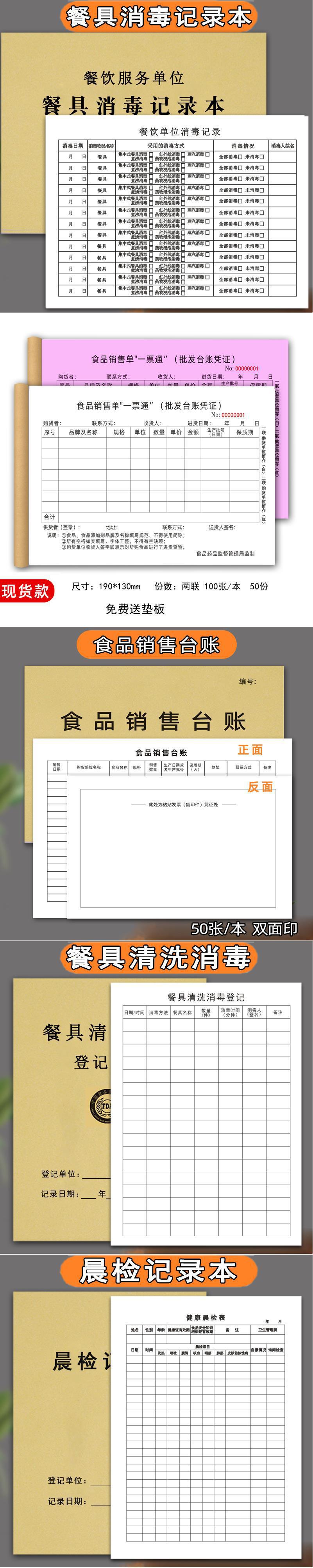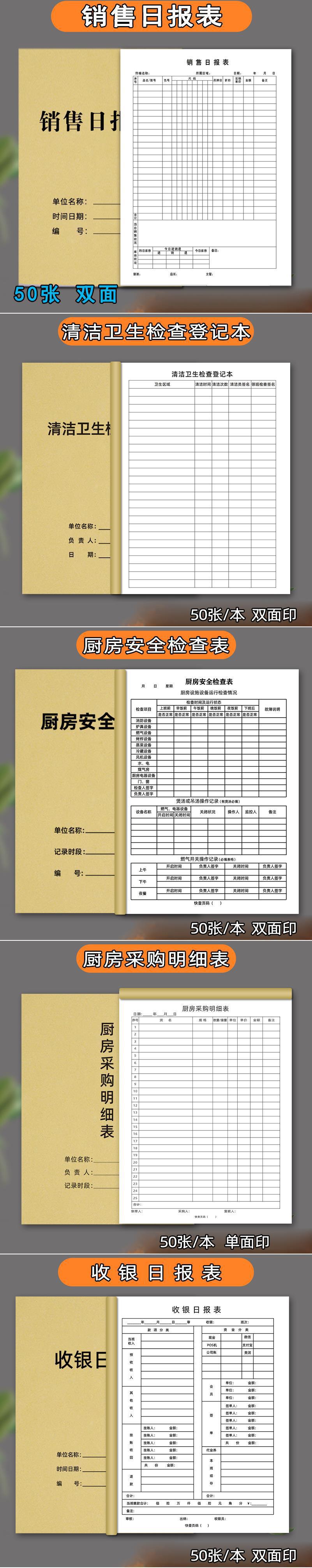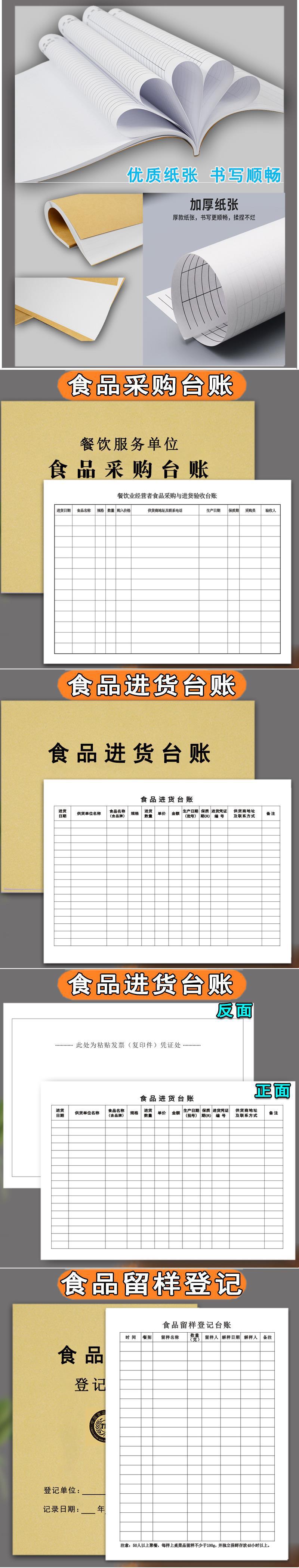 Catering Ledger food Ledger kitchen canteen food sample tableware cleaning record food purchase desk Ledger