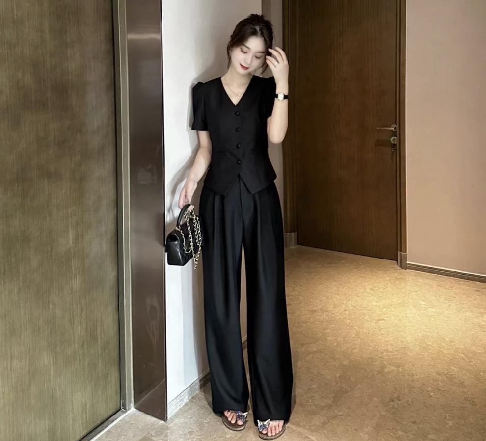 Chanel Style Elegant Professional suit 2024 Summer New Slimming Short sleeved Top Casual Wide leg Pants Two piece Set for Women