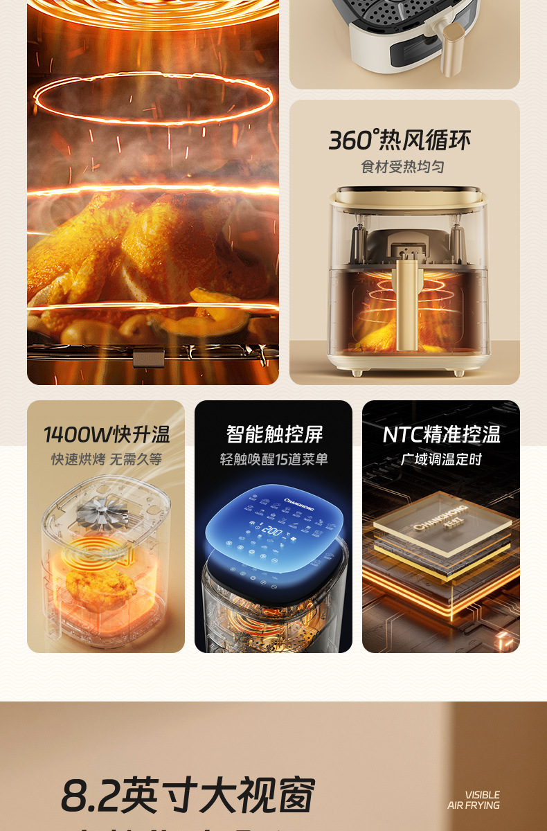 Changhong large capacity air fryer household visualization multi-functional air pot oven integrated up and down heating intelligence