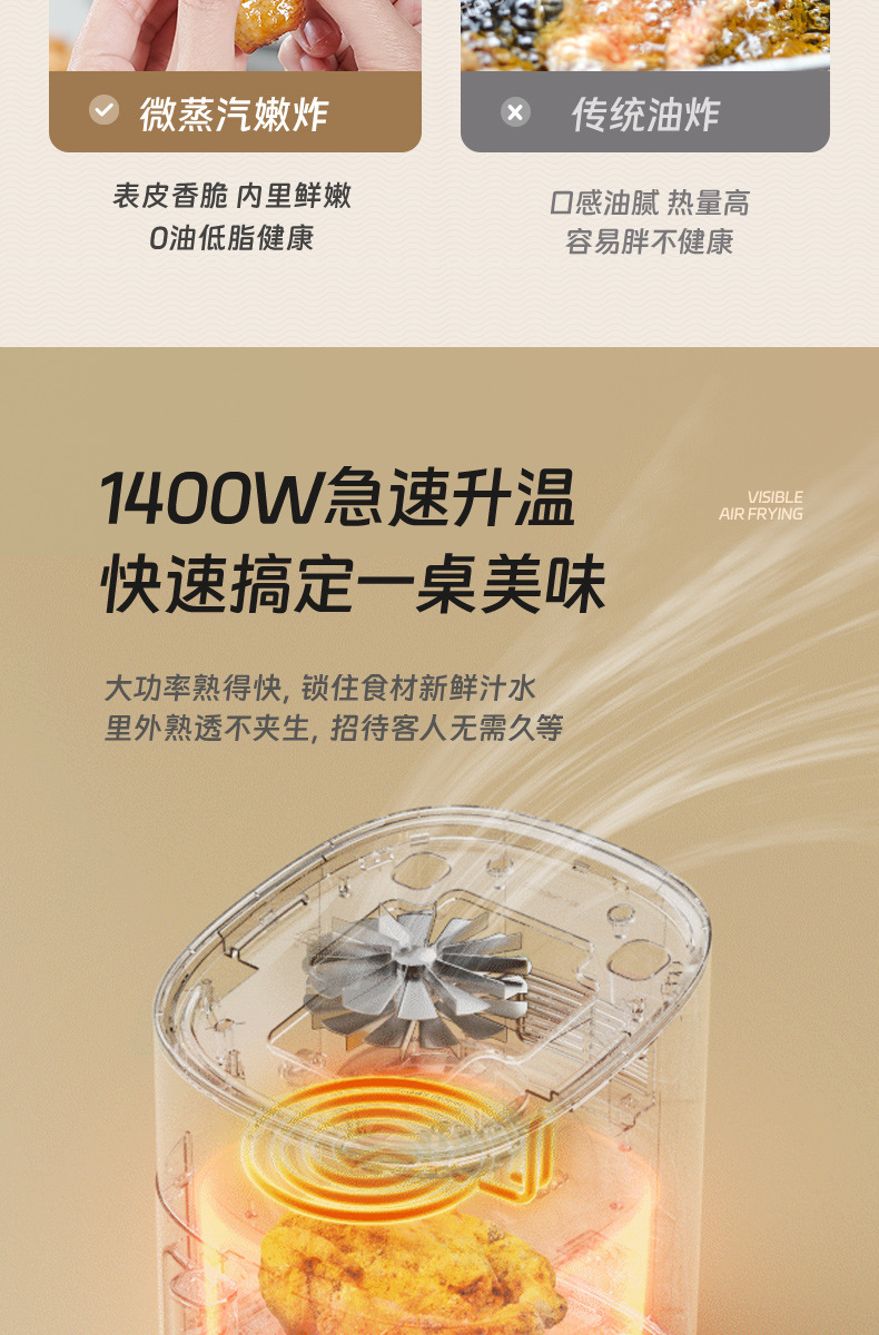 - [Visual model-green 8.0L] 4D stereo hot air baking +3min automatic preheating + LCD touch screen + enterprise collection is more favorable