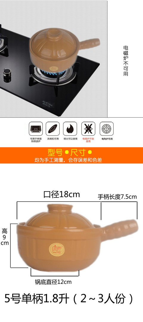 Chaoshan casserole traditional clay pot single handle casserole stew pot ceramic clay restaurant casserole household cooking paste pot milk pot