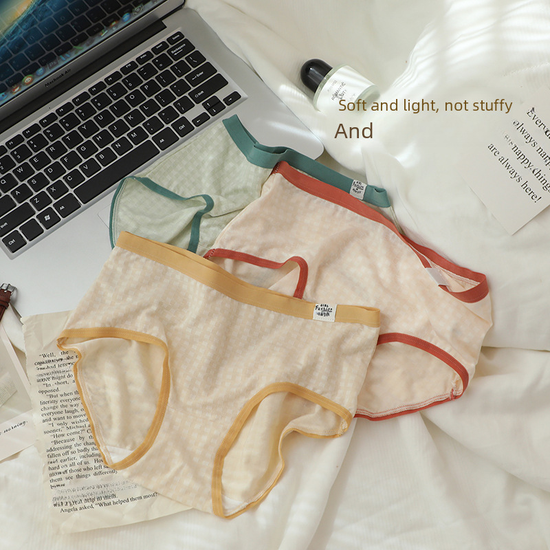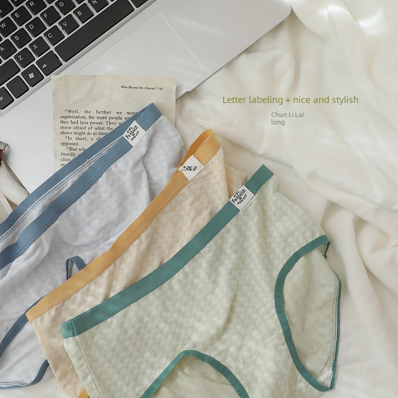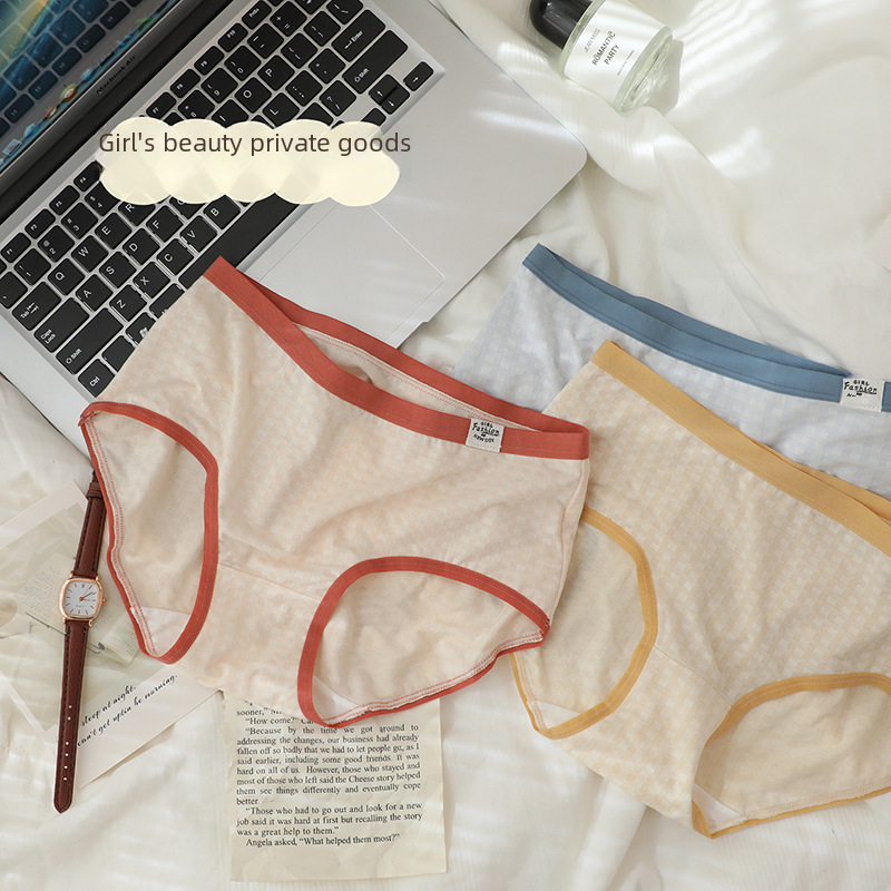 Chen s Daily Line Dopamine Plaid Girl s Sweet Soft Waxy High Elastic Skin Friendly Pure Cotton Bottom Crotch Briefs for Women