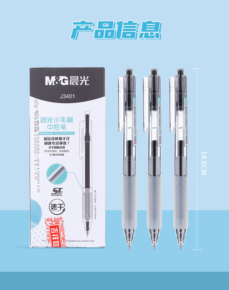 Chengguang AGPJ3401 gel pen 0.5mm Press ST pen head small brush quick drying ink student