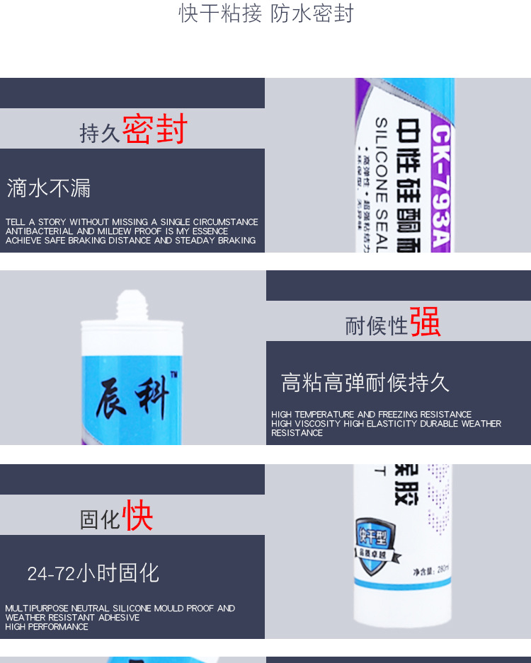 Chenke Glass Glue 793 Neutral Silicone Weather Resistant Glue Waterproof Sealant for Doors and Windows Porcelain White Transparent Black Dry Glue