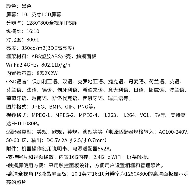Chi Liyuan 8 inch 10 inch 15.6 inch Frameo cloud photo frame WiFi digital photo frame with memory smart photo frame