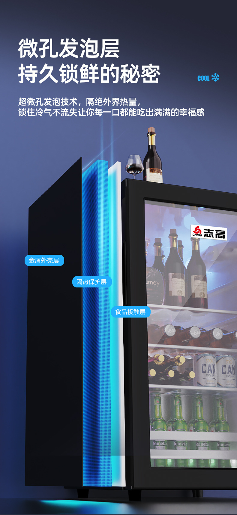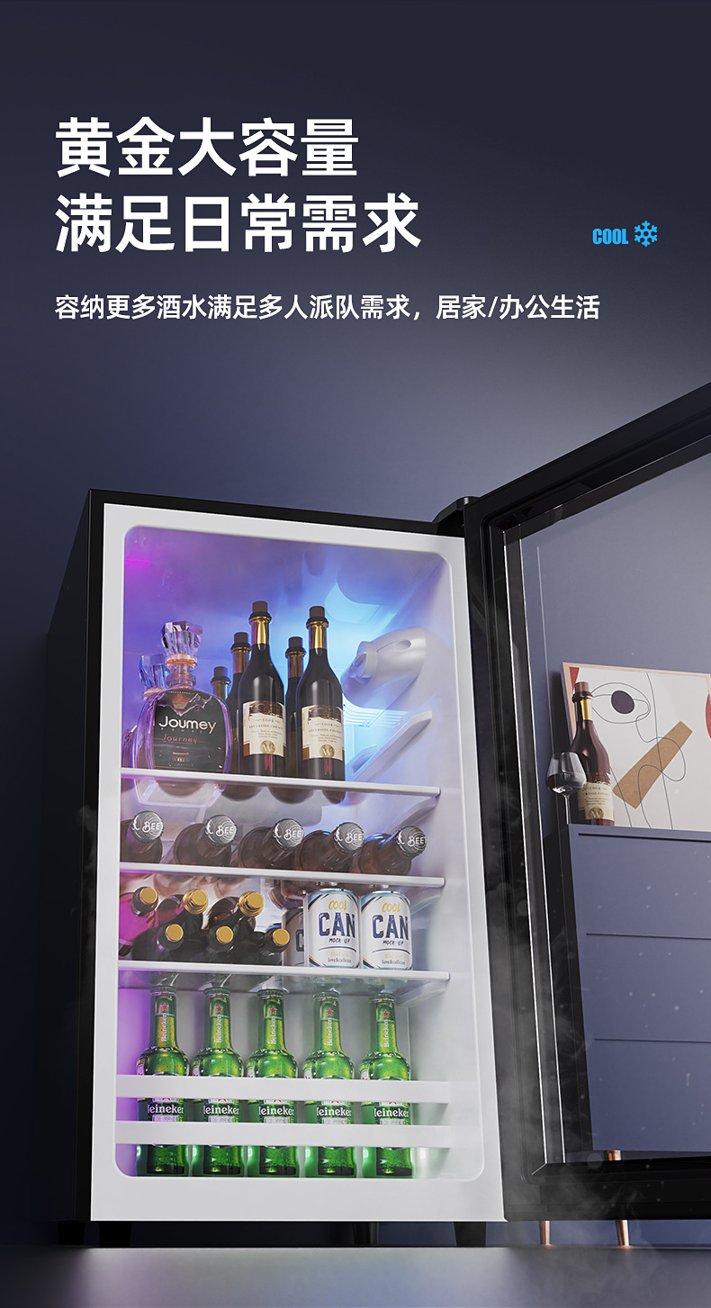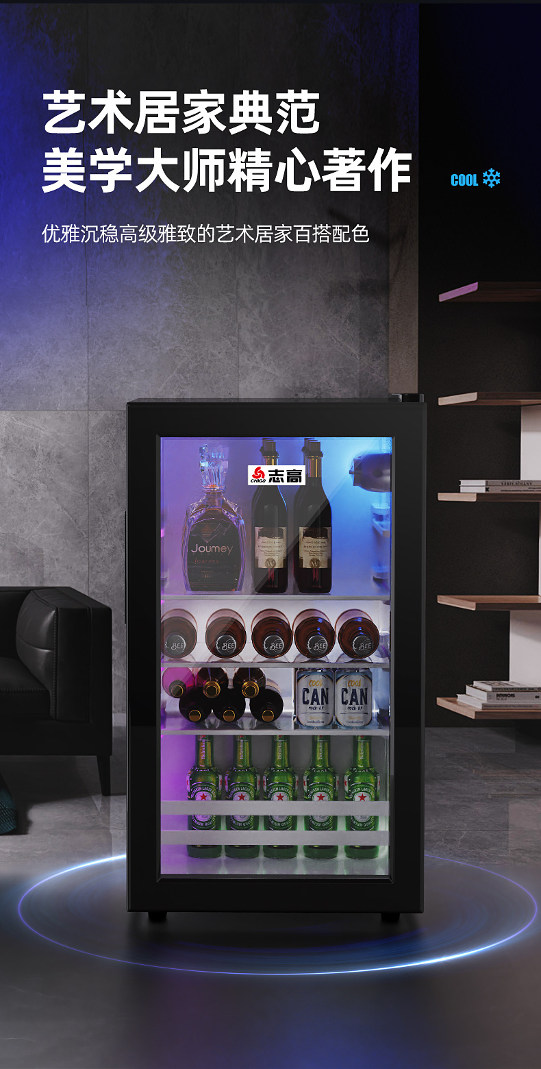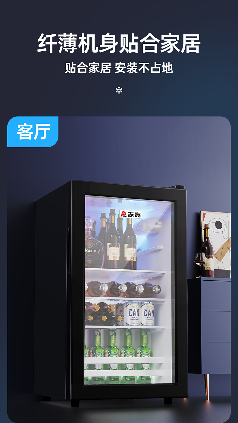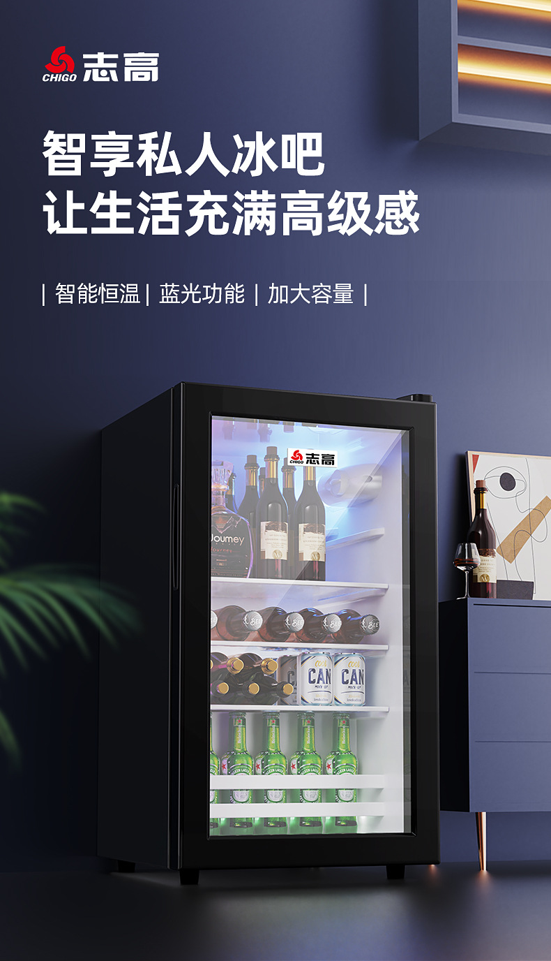 Chigo Ice Bar Small Refrigerator Household Commercial E sports Hotel Tea Single Door Large Capacity Glass Door Refrigerator