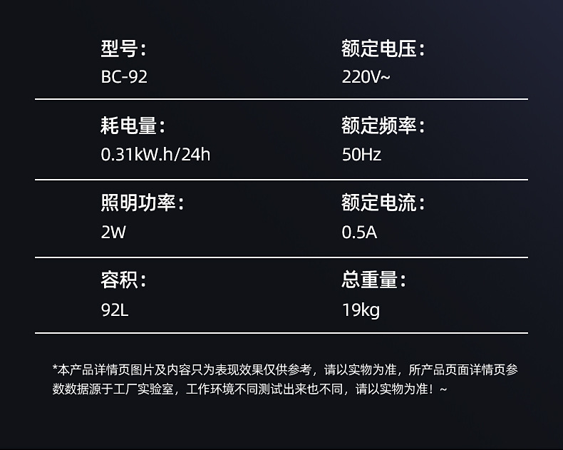 - 131 litres of Jin Dian Black Full Refrigeration with Blue Light