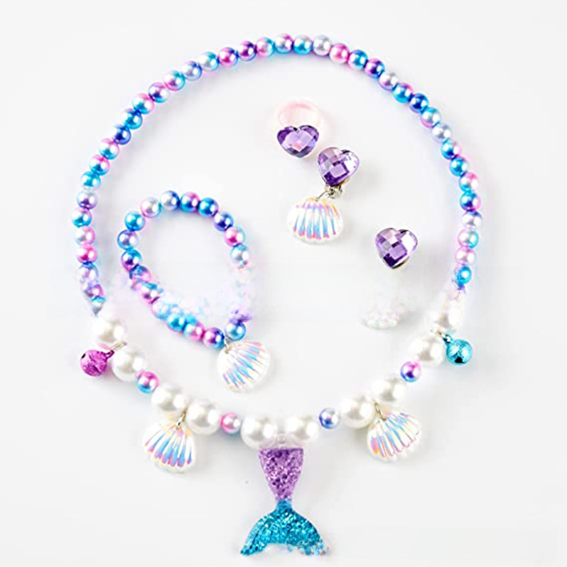 Children Mermaid Princess Necklace Shell Pearl Bracelet Children Underwater World Party Accessories Cosplay Decoration