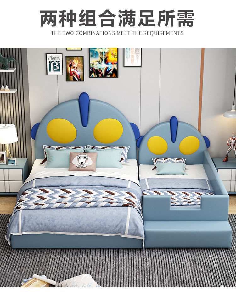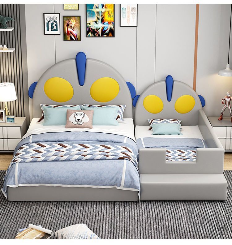 Children s Bed Boy s Splicing Big Bed Widened Splicing Bed with Guardrail Single Bed Dual purpose Baby s Anti fall Bedside Crib