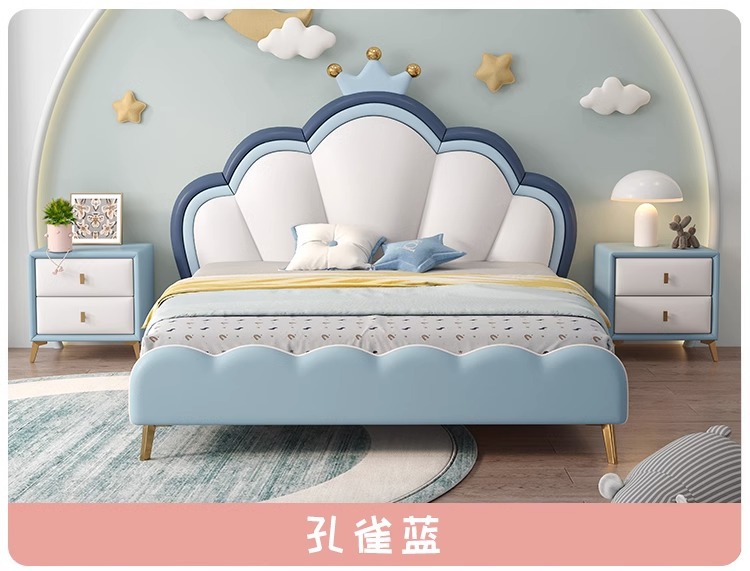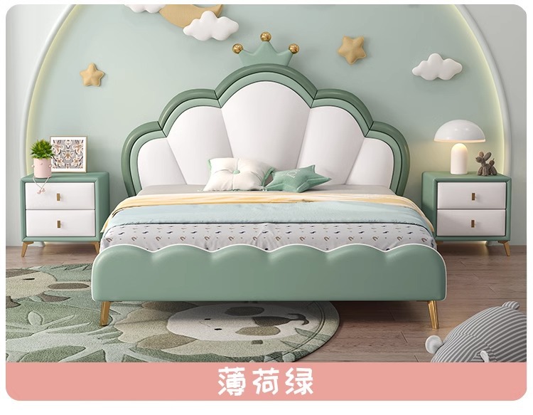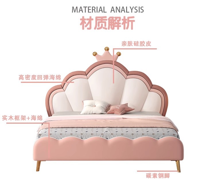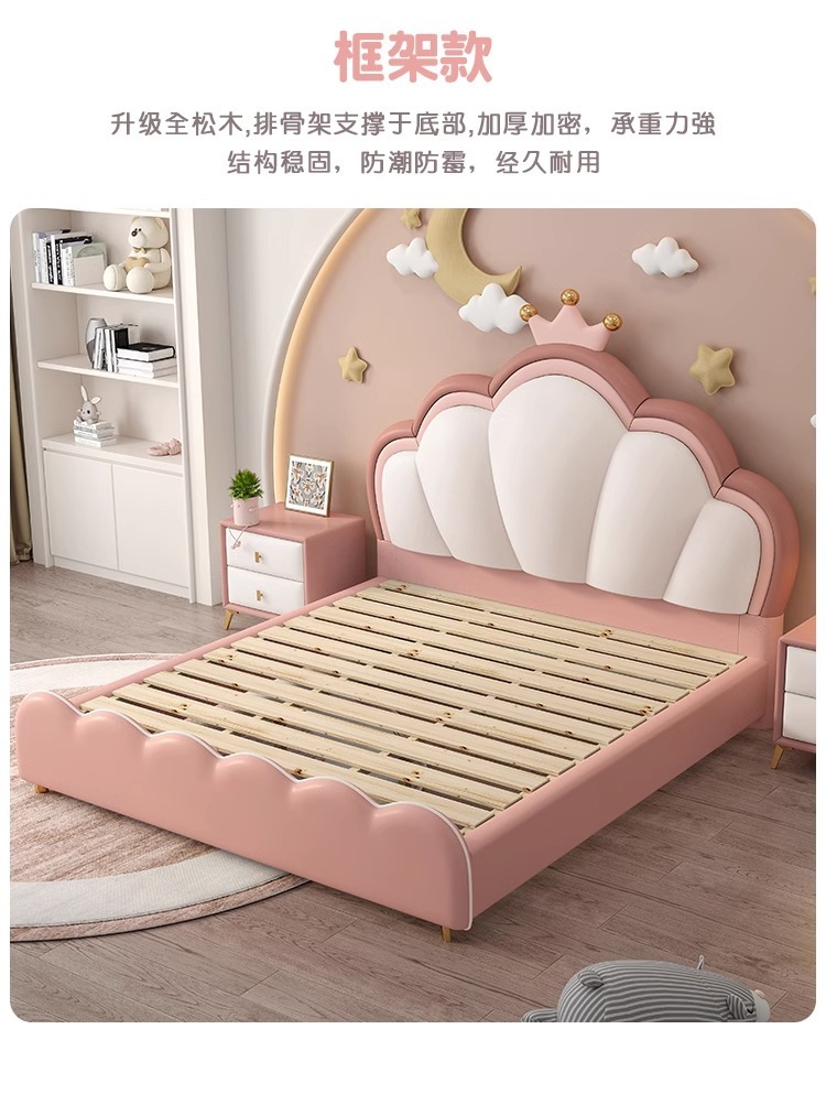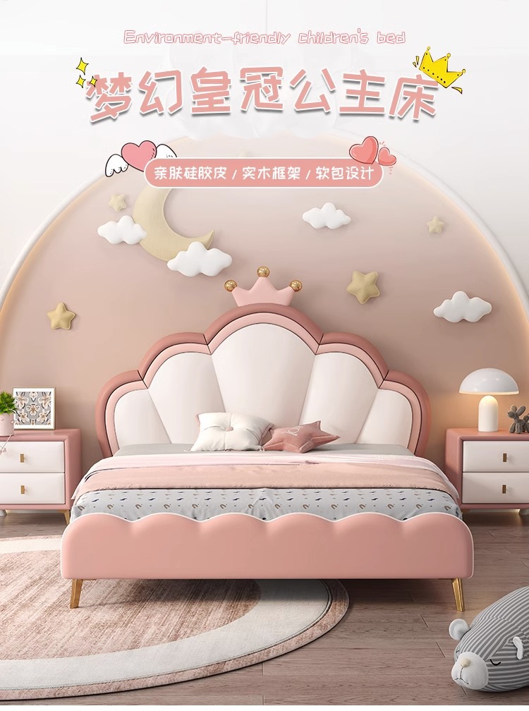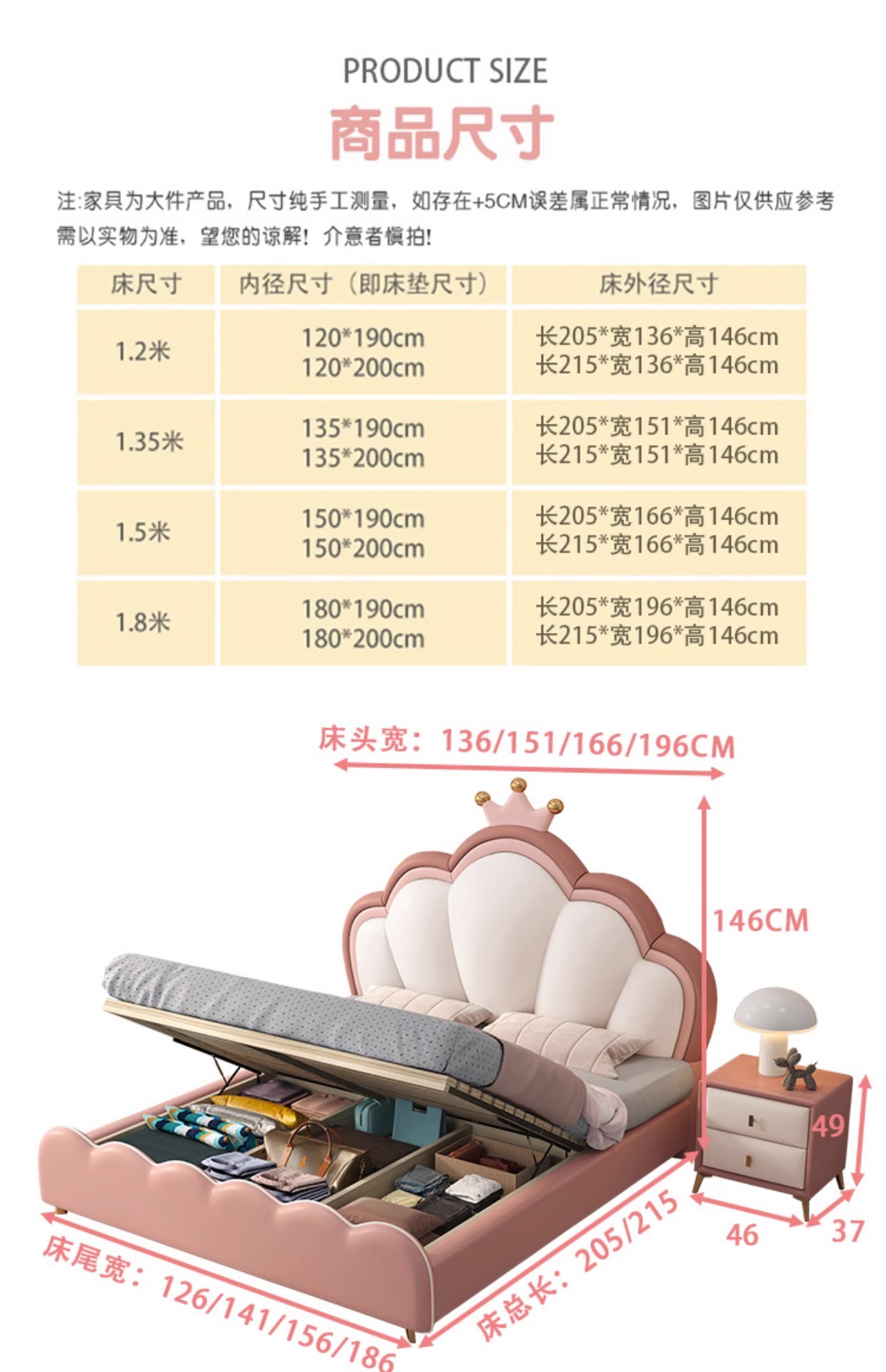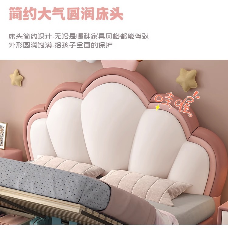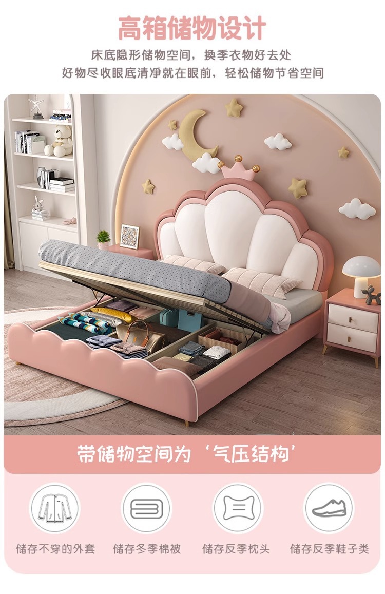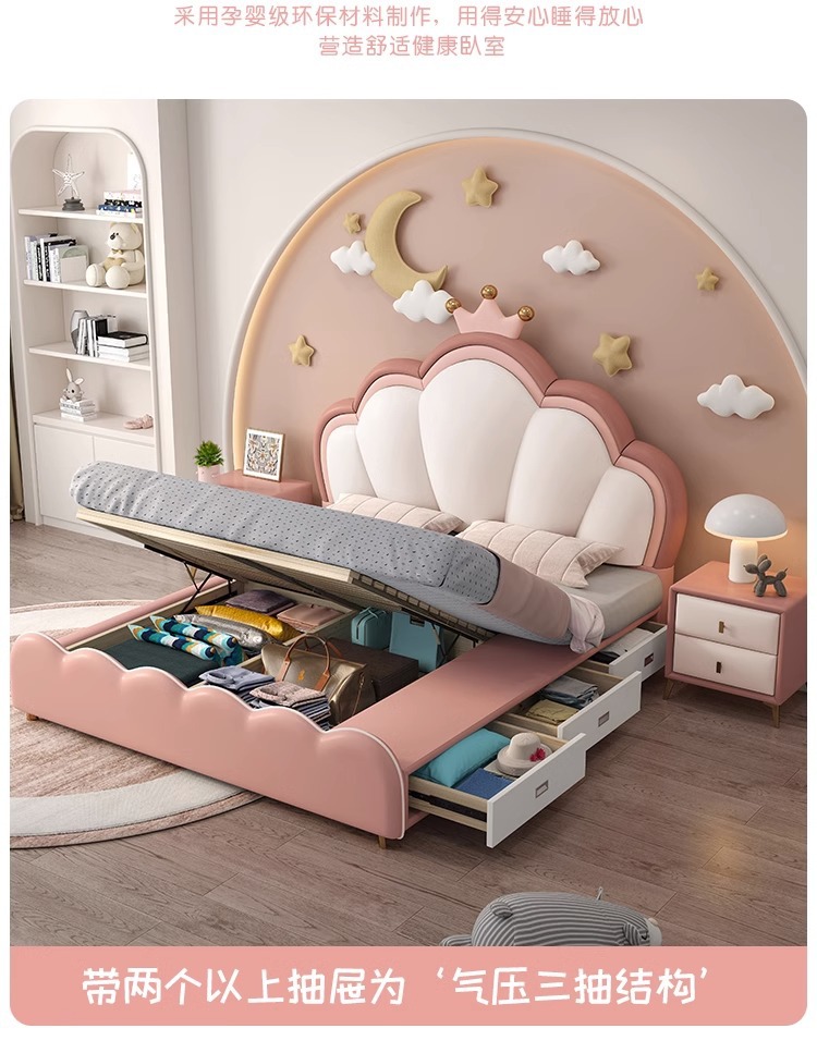Children s Bed Dreamy Girl s Crown Princess Bed Teenage Small Apartment Light Luxury Simple Storage Drawer Leather Bed