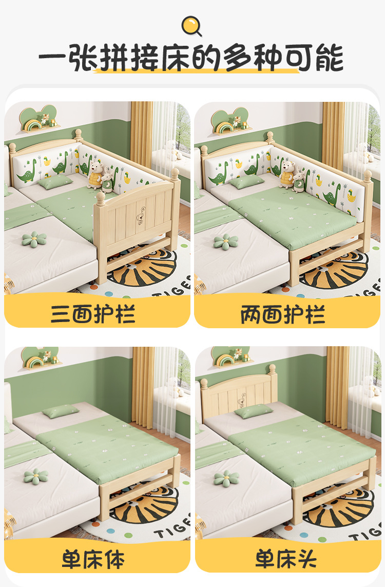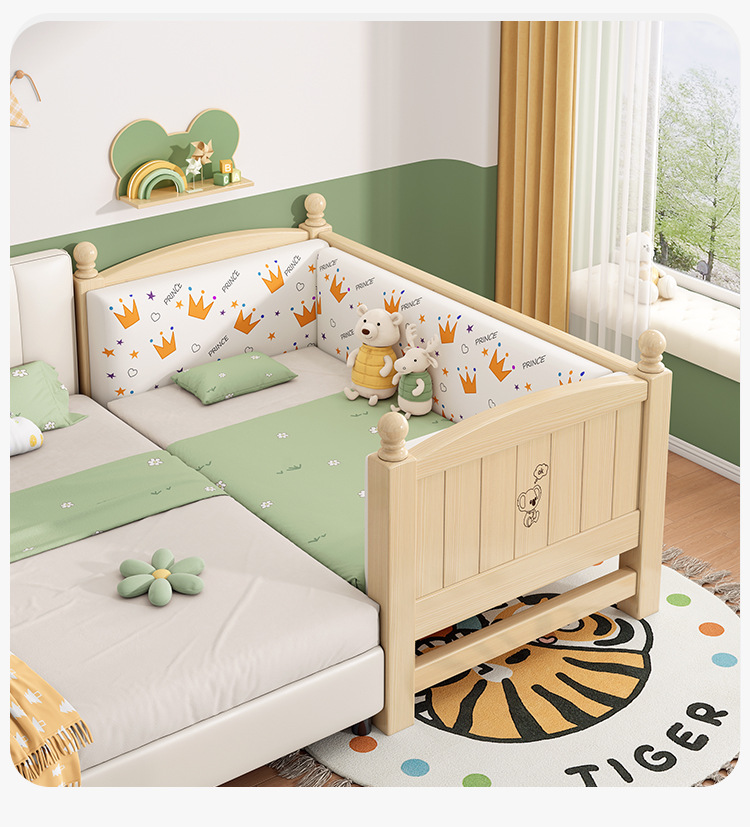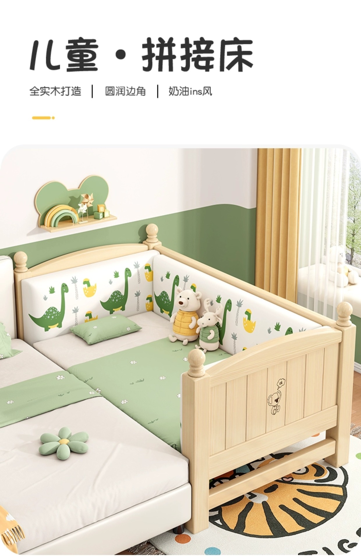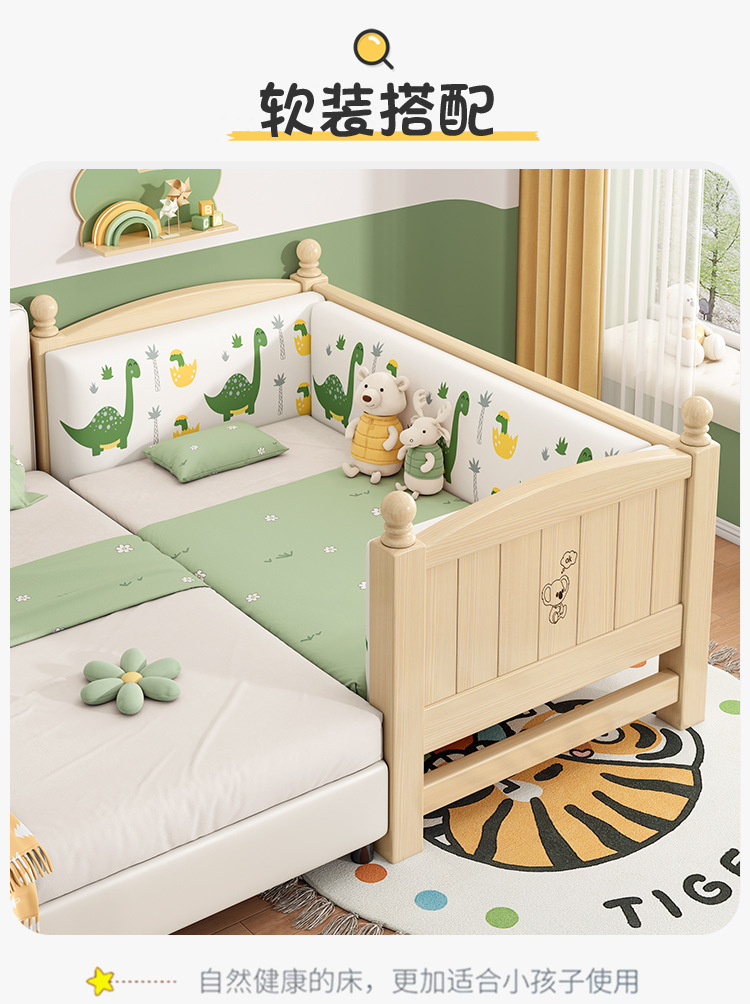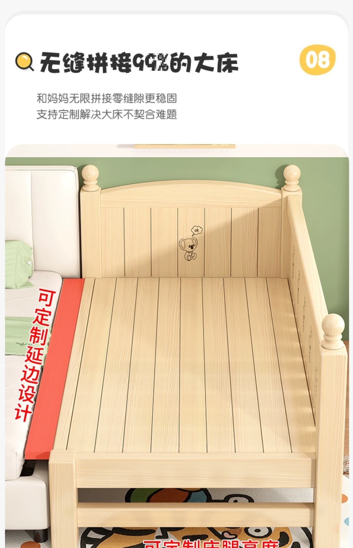 Children s Bed Splicing Bed Solid Wood Custom Baby s Crib Widened Bed with Guardrail Princess Bed Crib Splicing Large