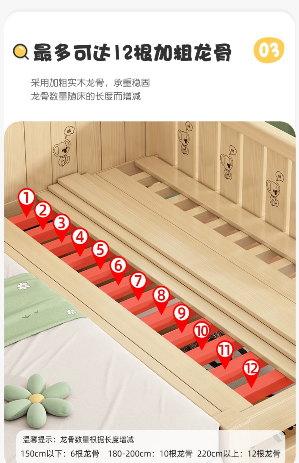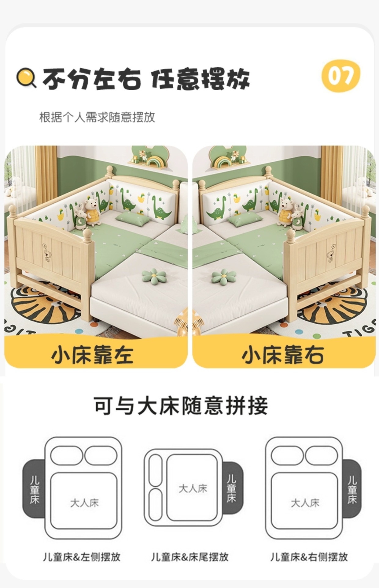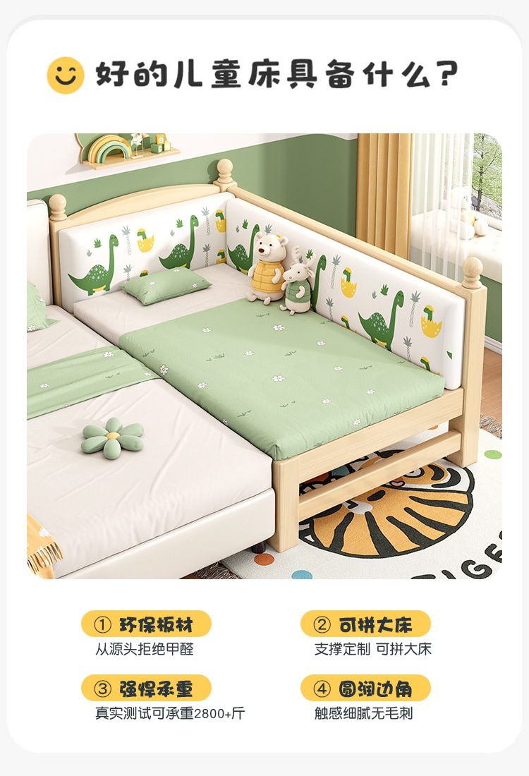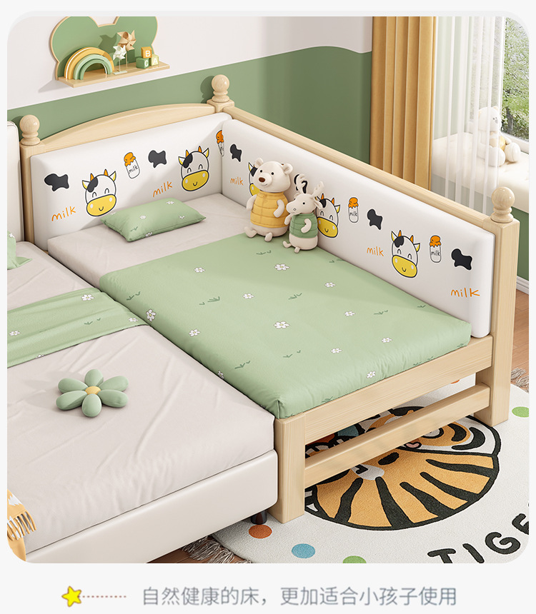 Children s Bed Splicing Bed Solid Wood Custom Baby s Crib Widened Bed with Guardrail Princess Bed Crib Splicing Large