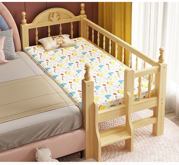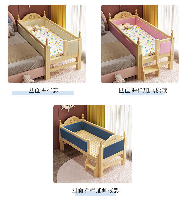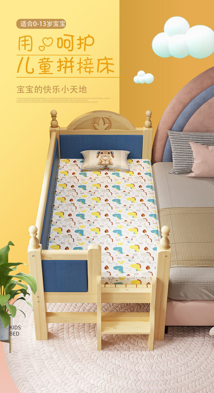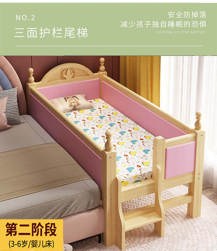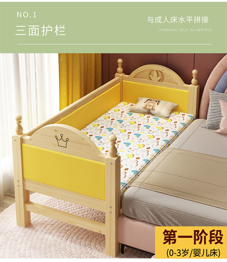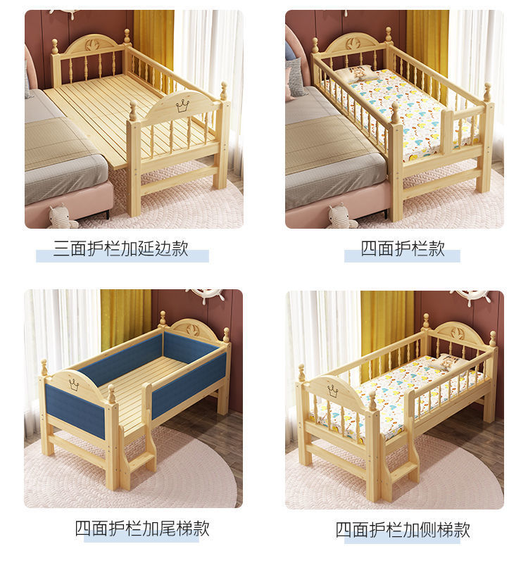 Children s Bed Splicing Big Bed with Guardrail Crib Boys and Girls Princess Bed Solid Wood Paint free Baby Widened Bed