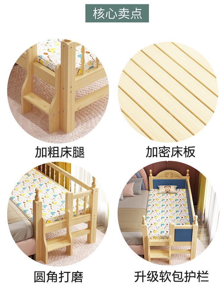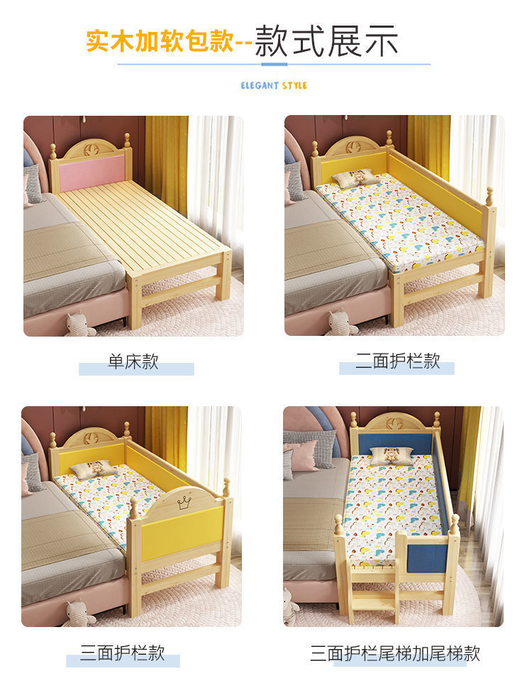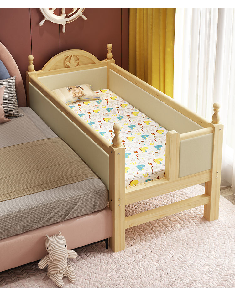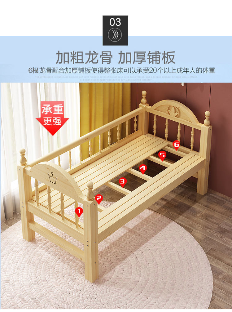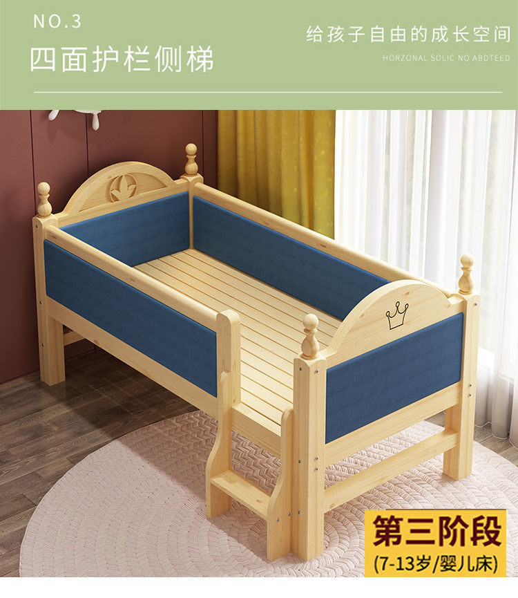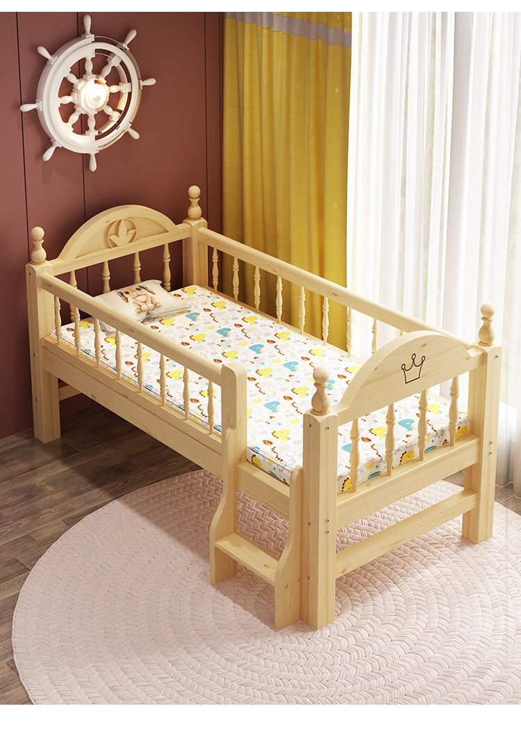 Children s Bed Splicing Big Bed with Guardrail Crib Boys and Girls Princess Bed Solid Wood Paint free Baby Widened Bed