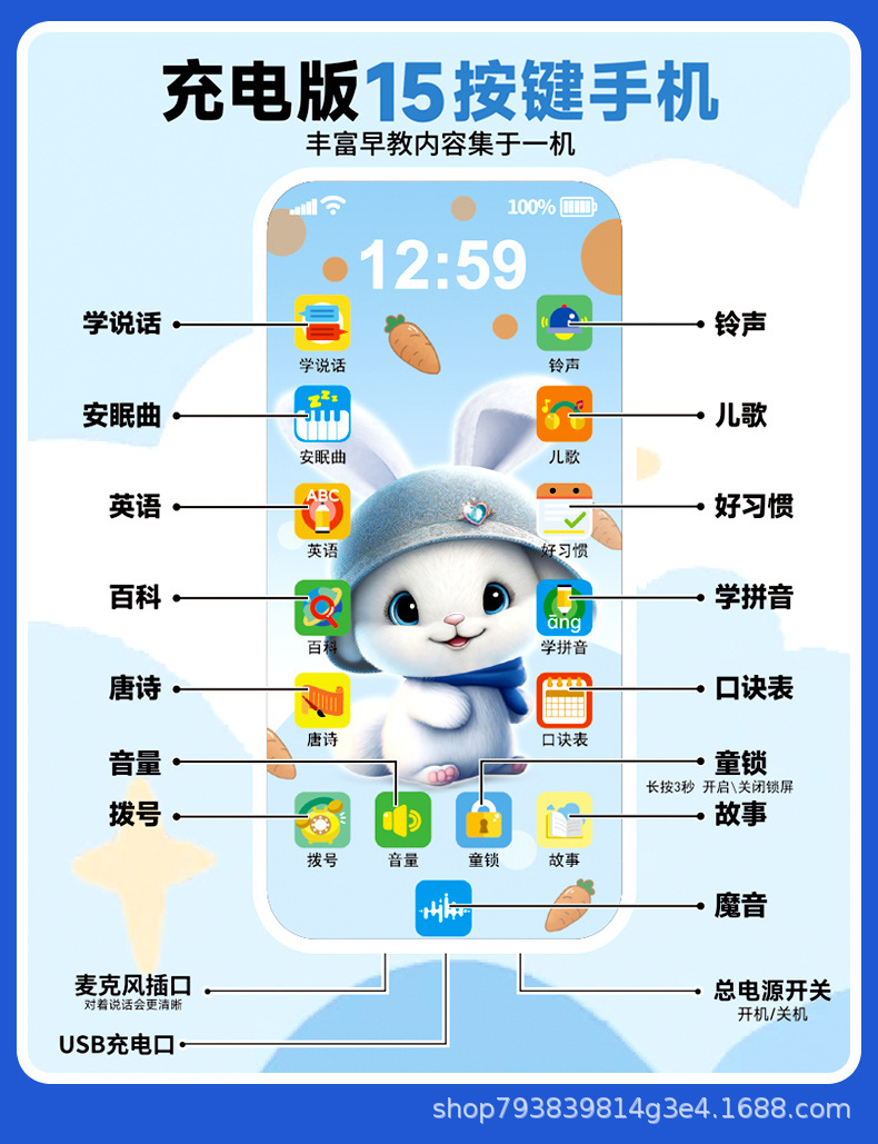 Children s Early Education Educational Mobile Phone Baby Multifunctional Learning Machine Early Education Music Simulation Telephone Toys for Boys and Girls