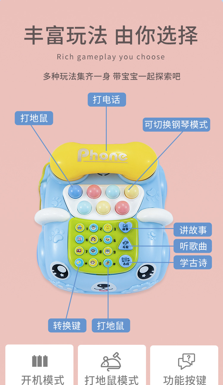 Children s Educational early education telephone Learning Machine Internet celebrity telephone hamster sound and light bilingual music telephone toy