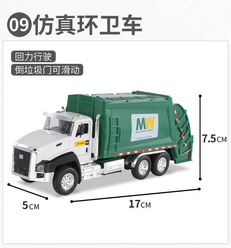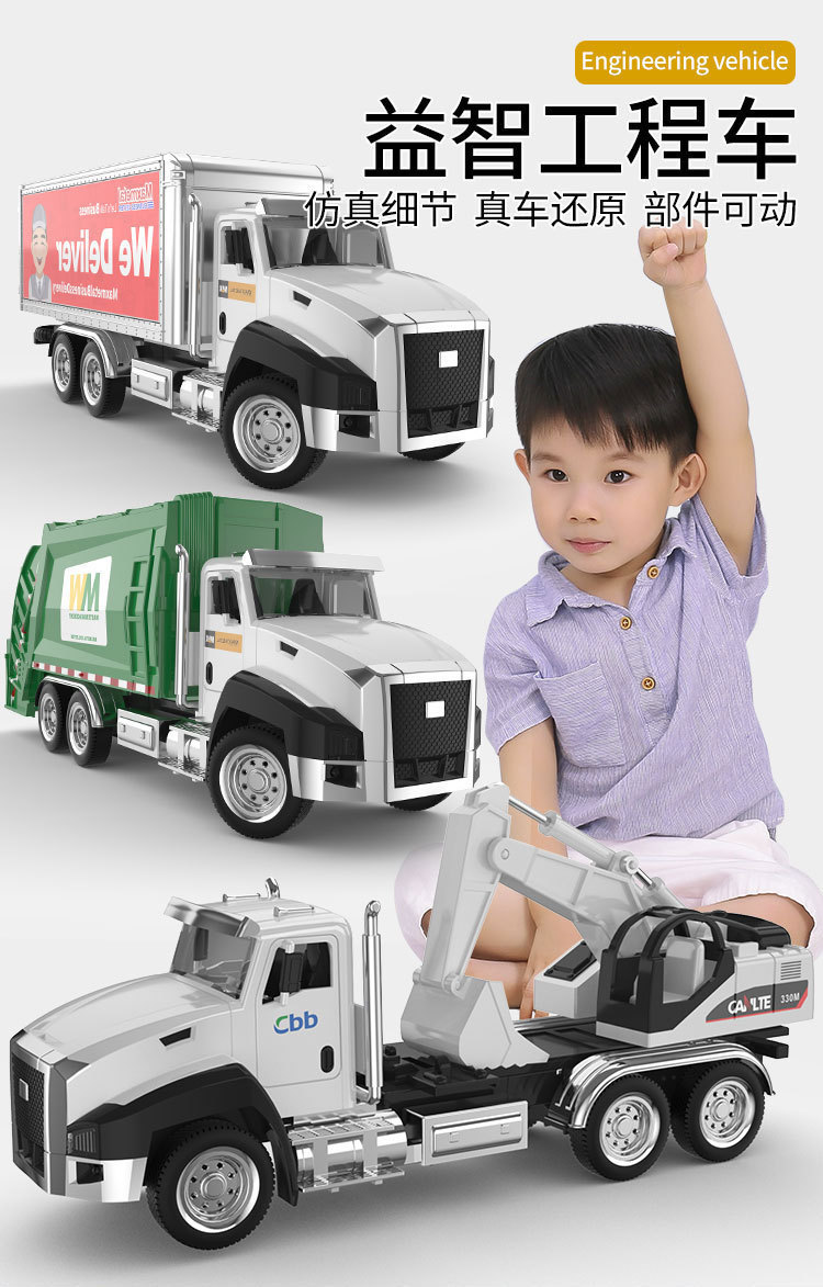 Children s Fire Engineering Vehicle Toy suit Alloy Huili Garbage Truck Mixing Digger Car Model Boys and Girls