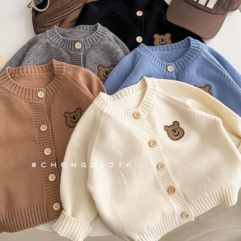 Children s Korean style knitted cardigan coat spring and autumn infant long sleeved top boys and girls baby Autumn Sweater outwear