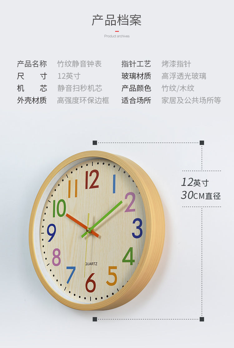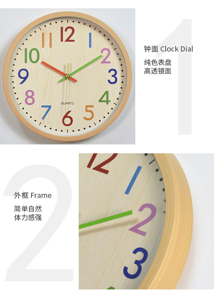 Children's Learning wall clock home mute clock wall-mounted living room personalized creative decorative quartz clock punch-free