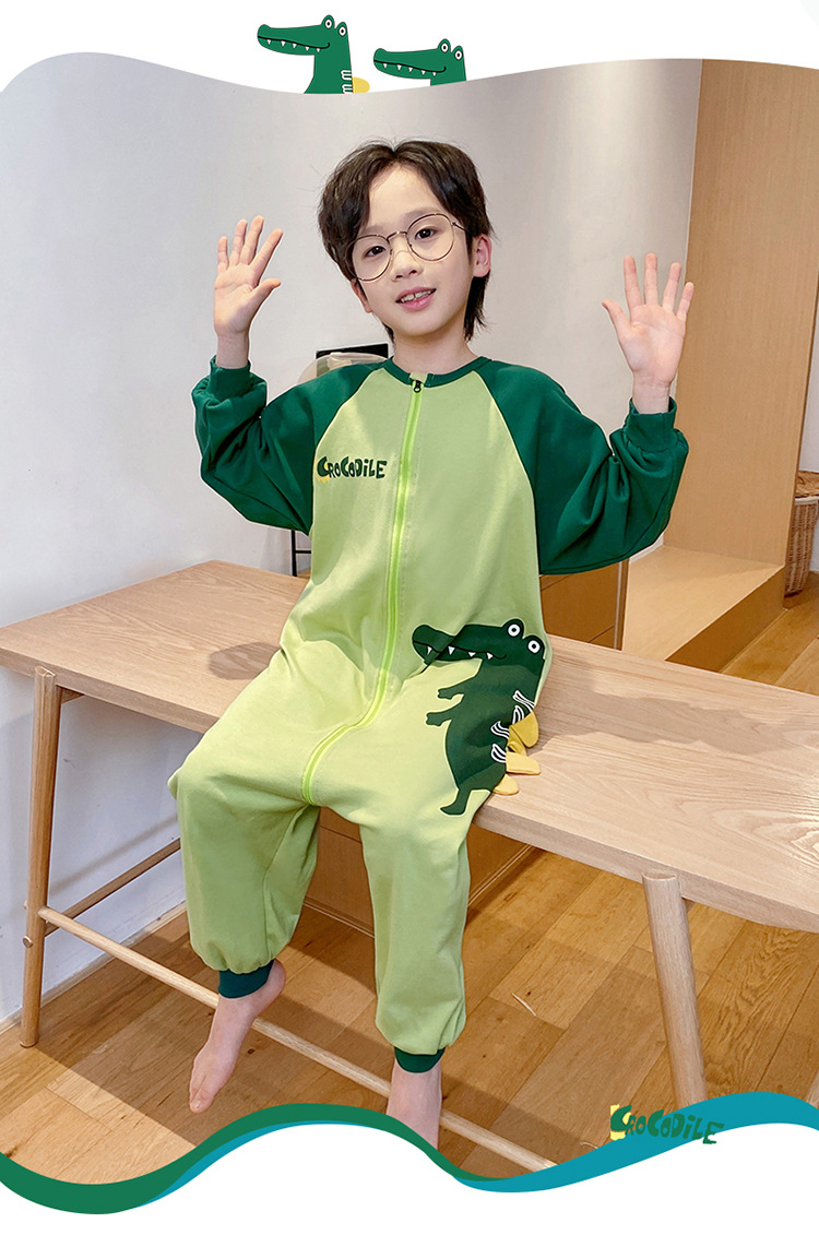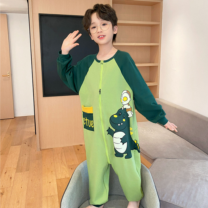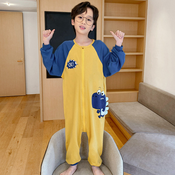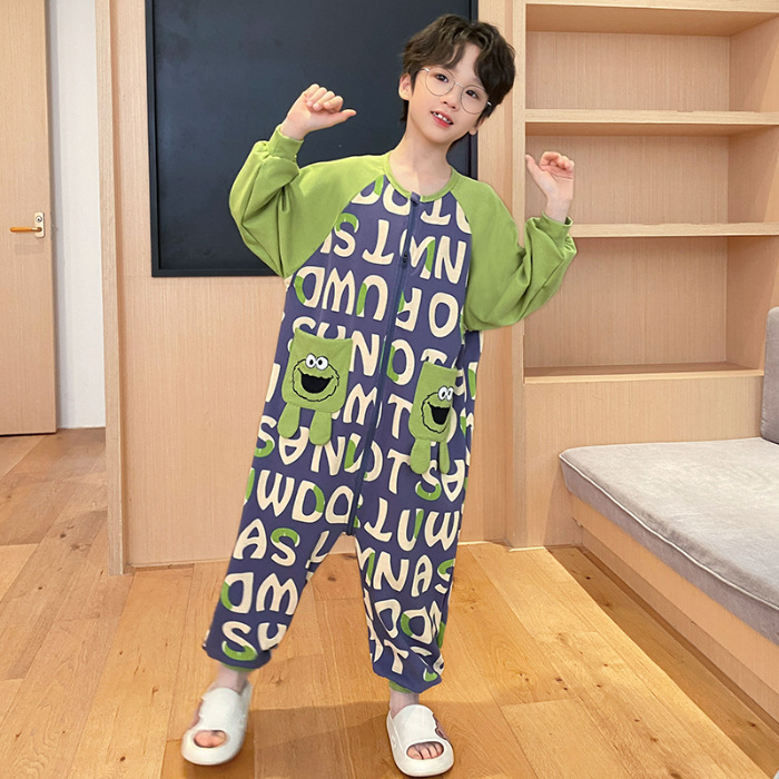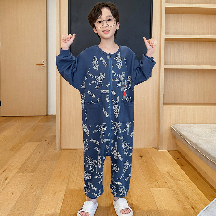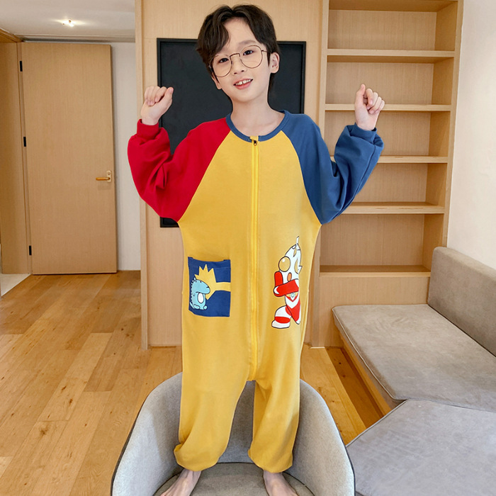 Children s Pure Cotton Jumpsuit Boys Pajamas Spring and Autumn Summer Big Children s Cartoon Little Boy s Belly Covering Home Clothes Kick proof Quilt