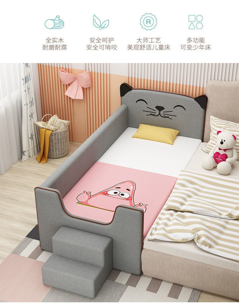 Children s Splicing Bed Big Bed Widened Bed Baby Splicing Bed with Guardrail Solid Wood Single Bed Side Bed Widened Bed Children s Bed