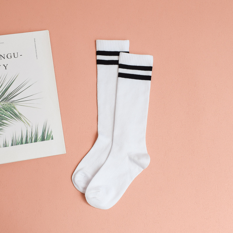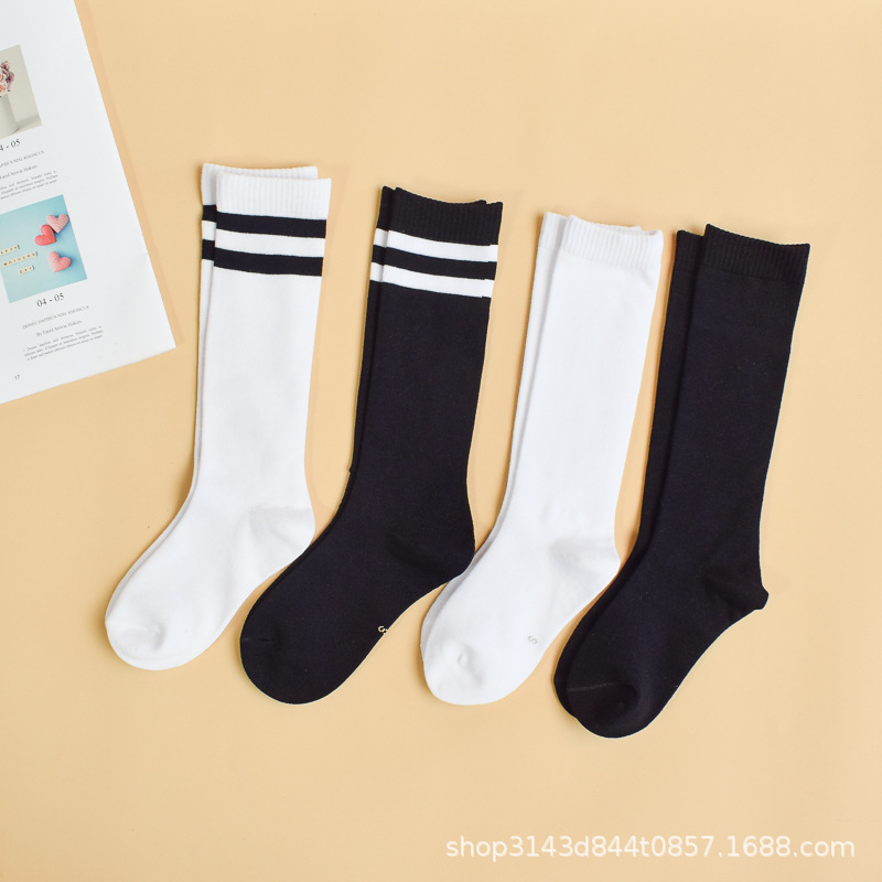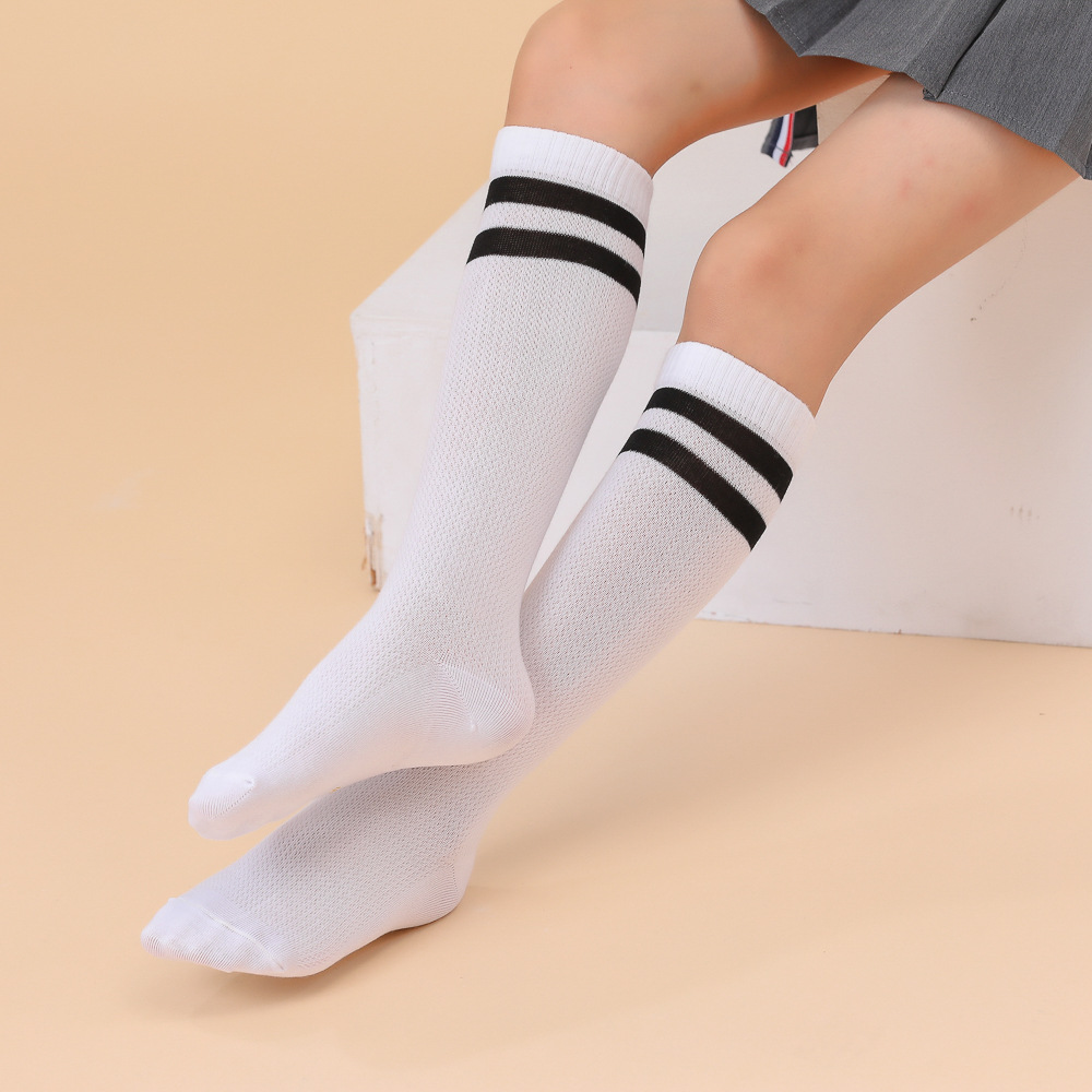 Children s Stockings Cotton White 2 Bar Spring and Autumn Summer Boys and Girls Half Student Black But Knee Shallow Socks
