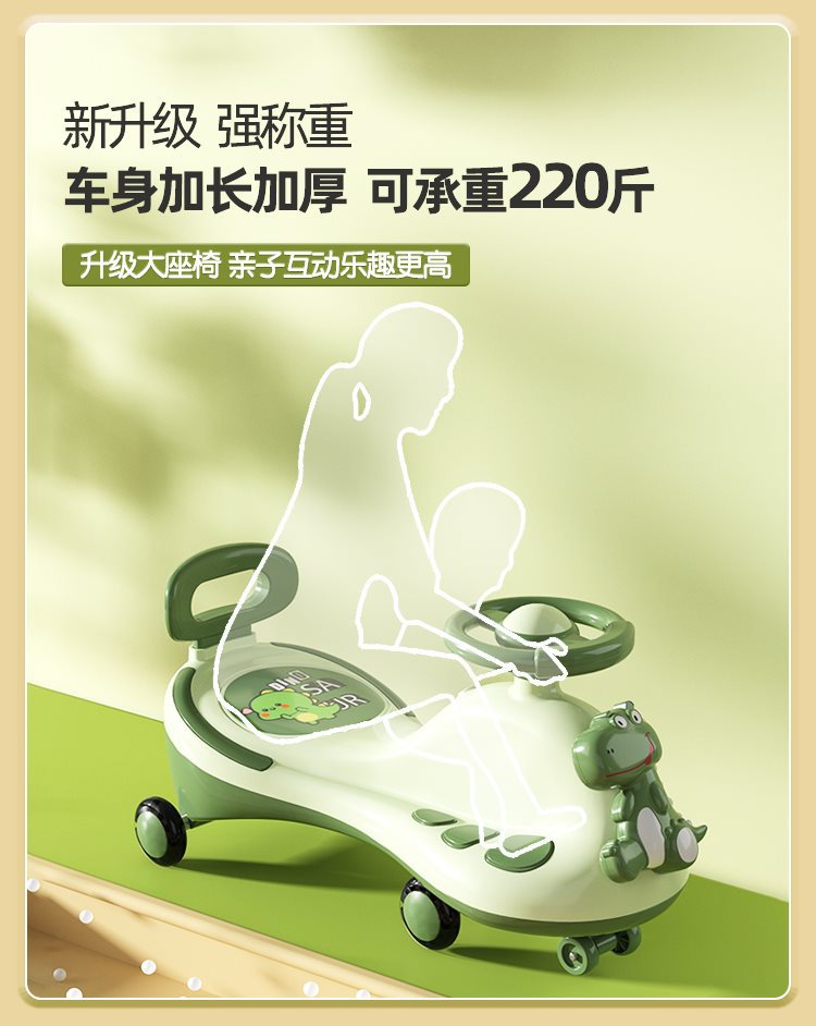 - [New Upgraded Dinosaur Green] Thickened and Reinforced Silent Flash Wheel Music Light Traction