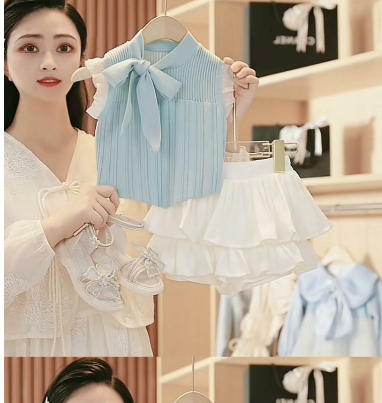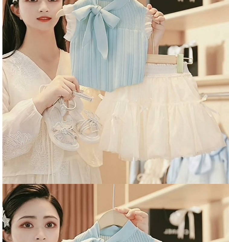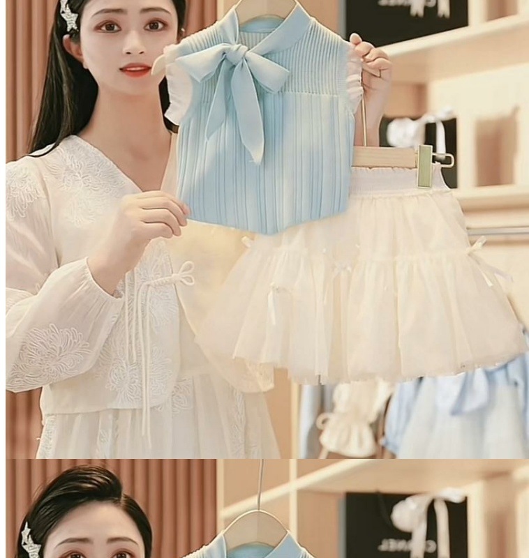 Children s Wear Summer Girl s Stylish Knitwear Ice Silk Vest Top Cake Skirt Summer Two piece Set
