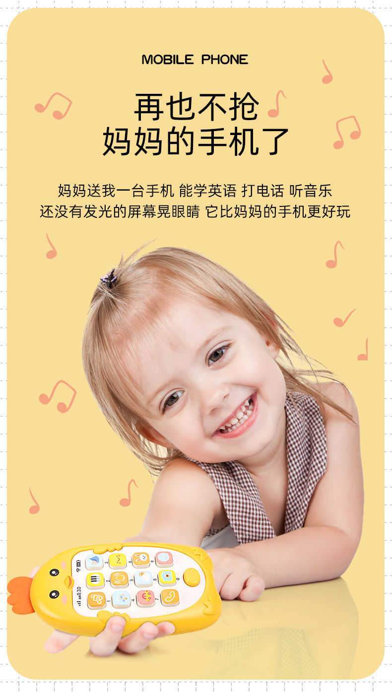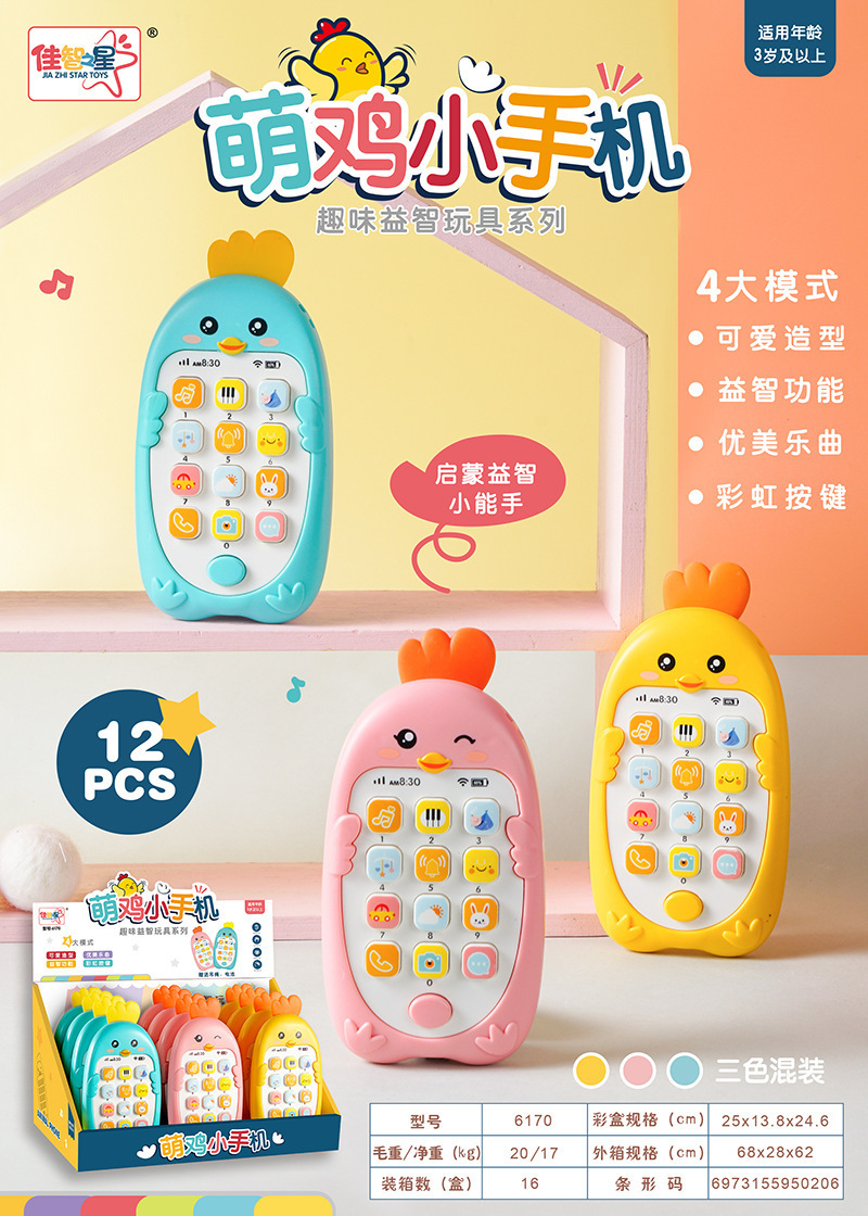 Children s adorable chicken music mobile phone electric toy simulation telephone tooth glue light baby puzzle early education story machine