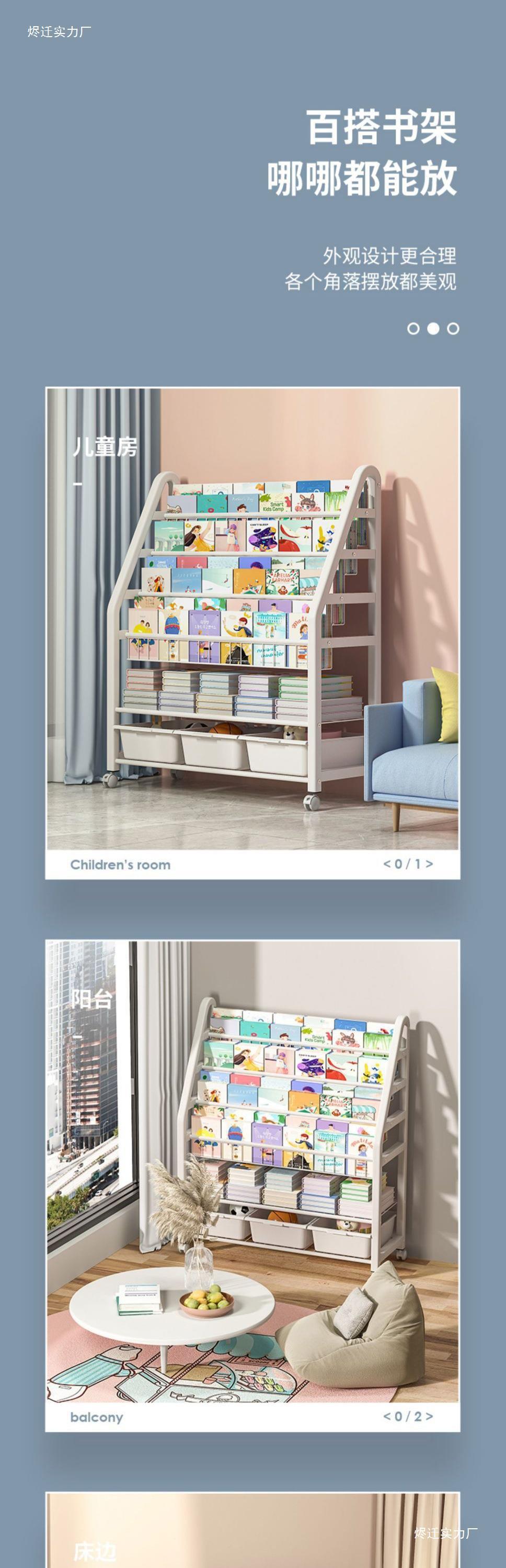 Children's bookshelf home reading rack toy picture book multi-layer storage rack movable bookcase baby storage rack