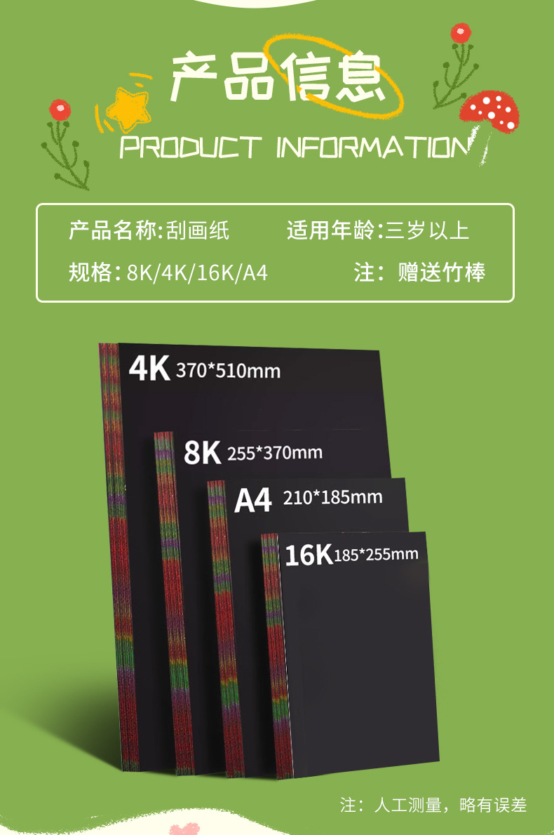 Children s colorful scratch paper A4 kindergarten color scratch painting 16K scratch wax paper 8K sand painting elementary school student scratch Painting Book