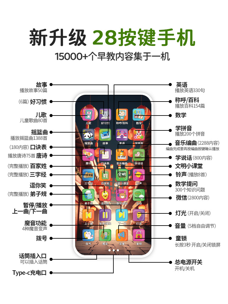 - [Dragon year Daji] 28 keys early education Mobile Phone +15000 early education content