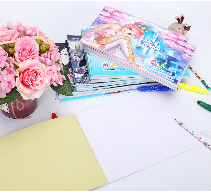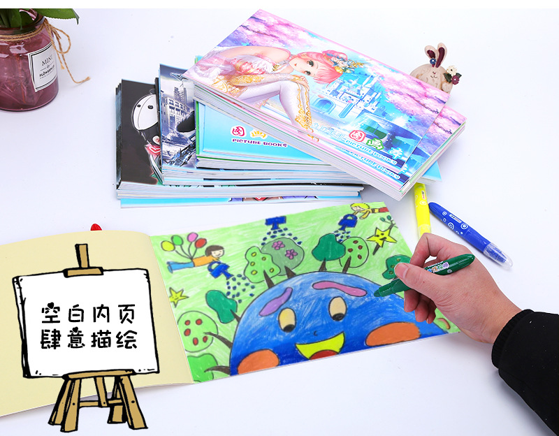 Children s picture book blank painting book Primary School students graffiti art paper a4 large with stickers picture paper Painting Book