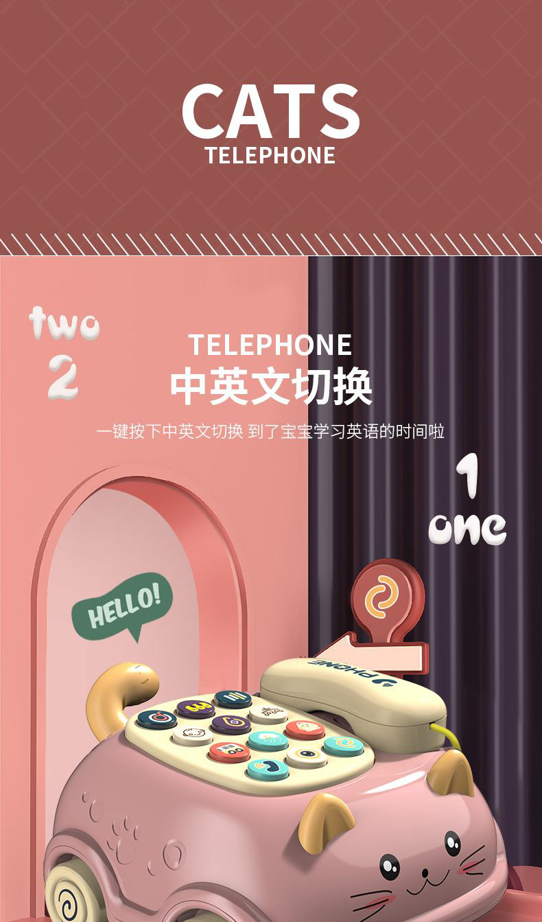 Children s simulation meow phone multi functional puzzle Chinese English bilingual early education toy baby 1 to 3 years old story machine