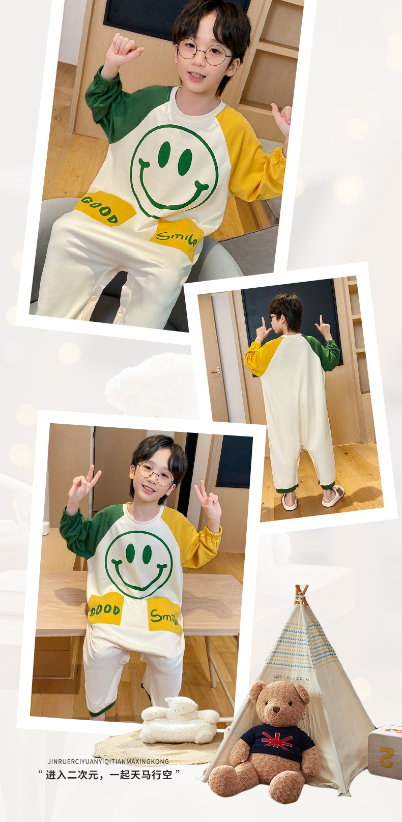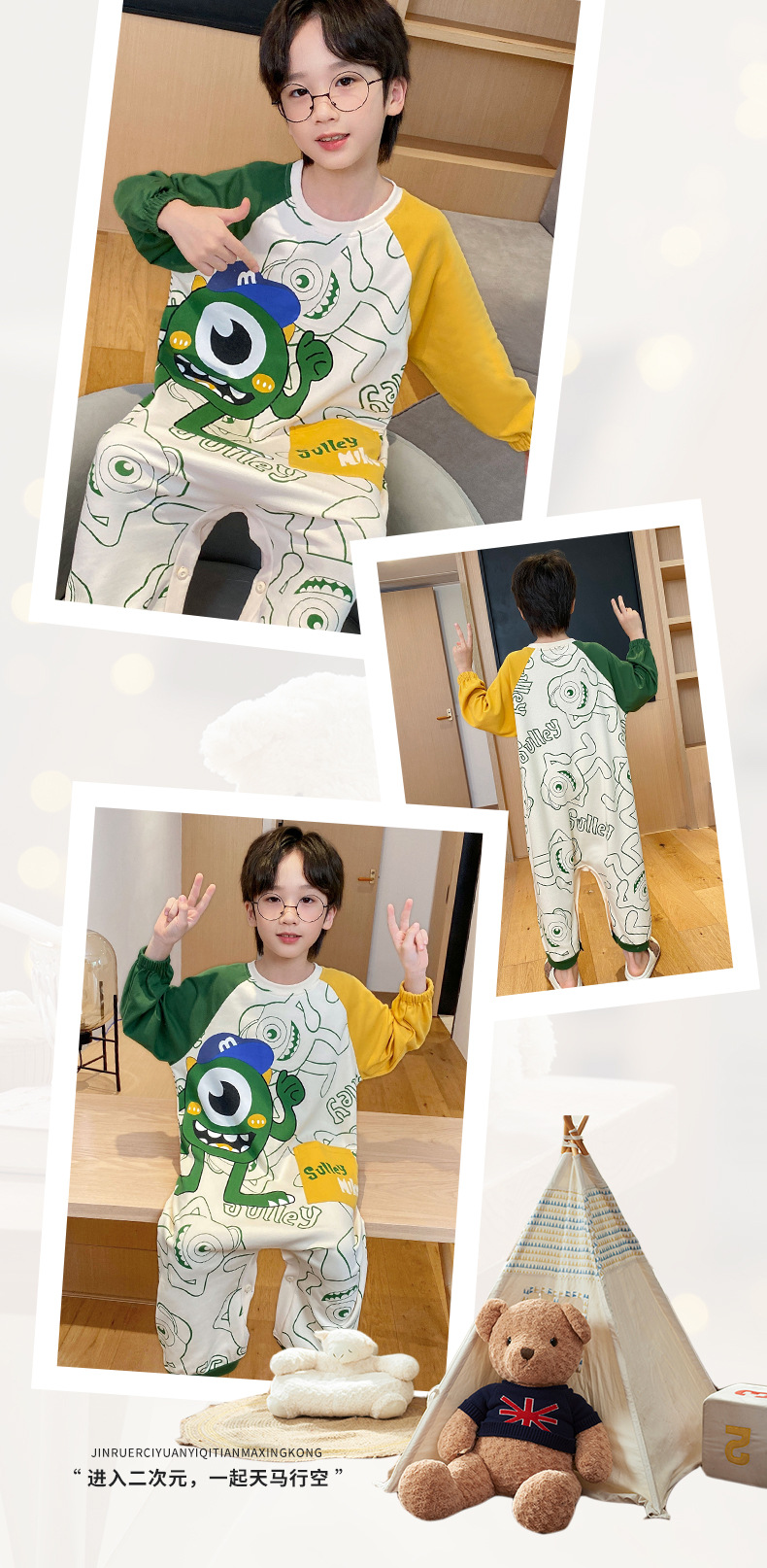 Children s sleeping bag pure cotton spring and autumn anti kick quilt male and female baby one piece home clothes pajamas air conditioned room Four Seasons Universal