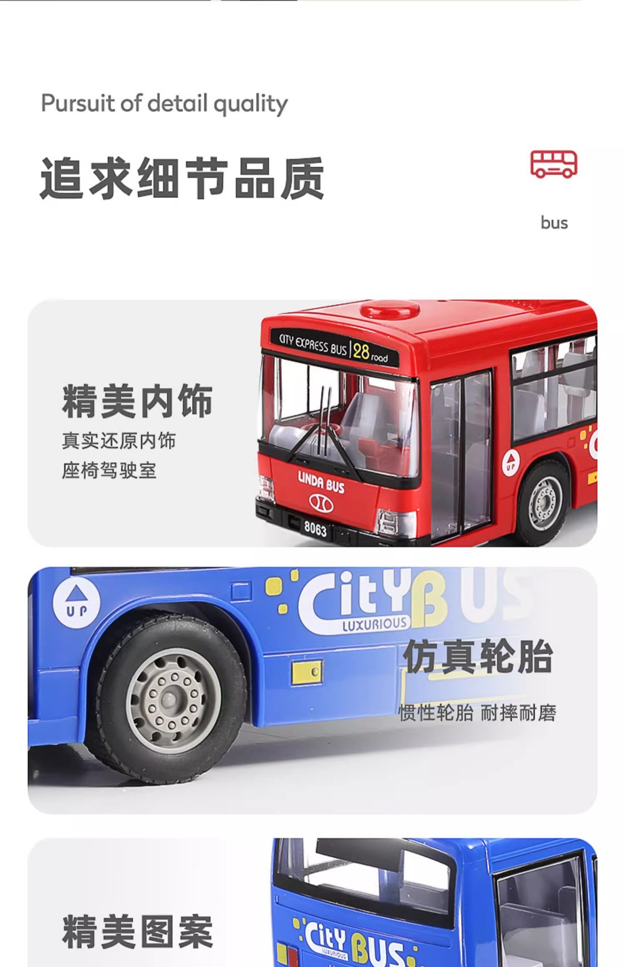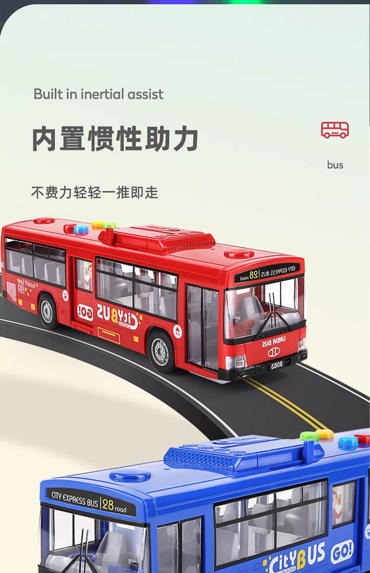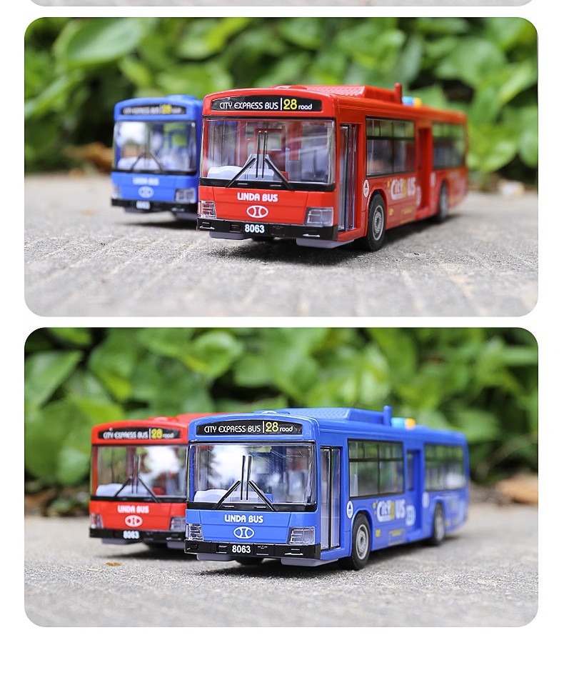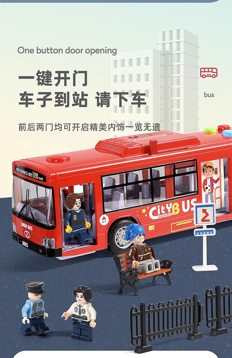 - [8063 Red] sound and light bus (3 building blocks doll +11 sets of road signs + Bus Station)