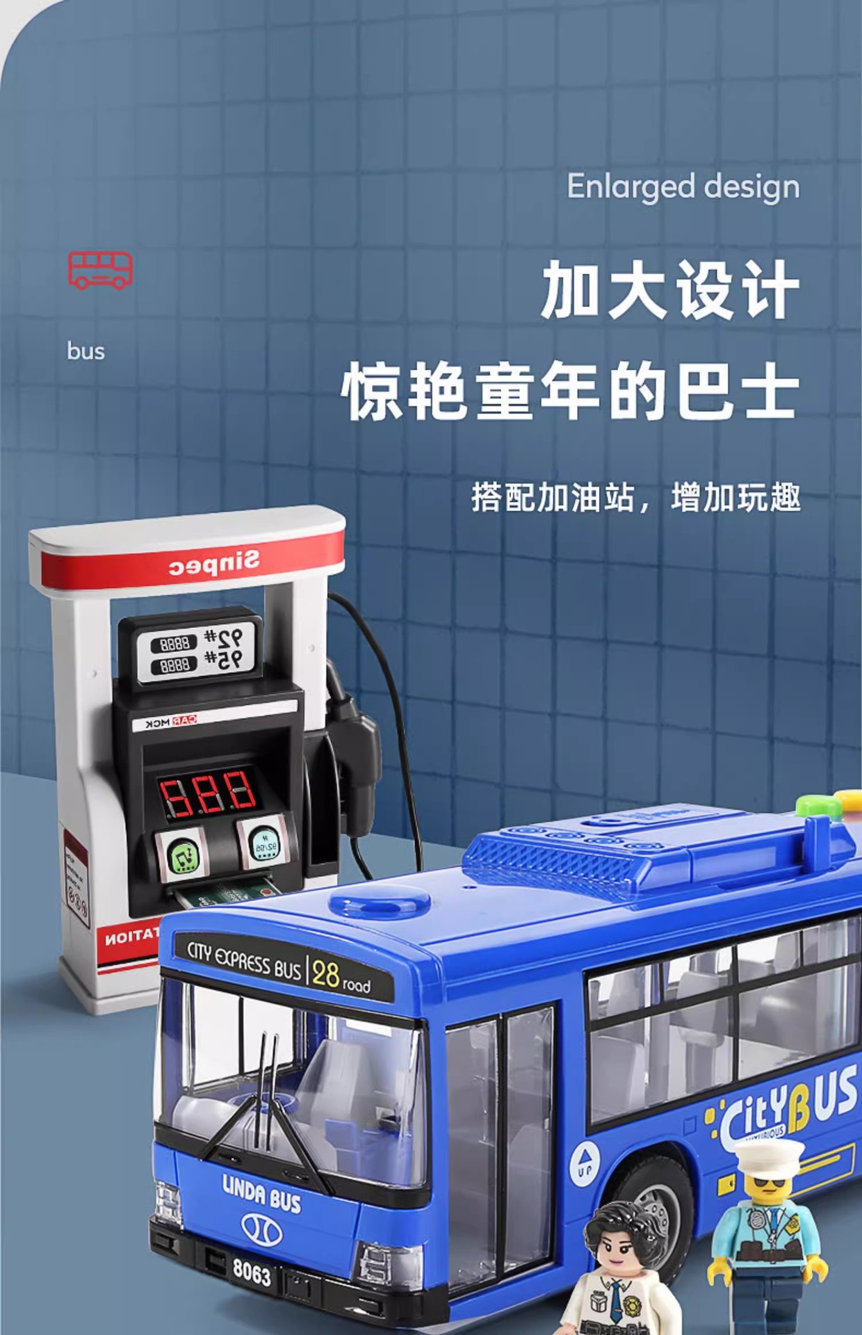 - [8063 Blue] acousto-optic bus (3 building blocks +11 road signs + bus platform +501 gas station)