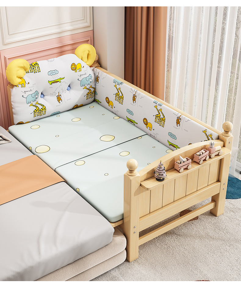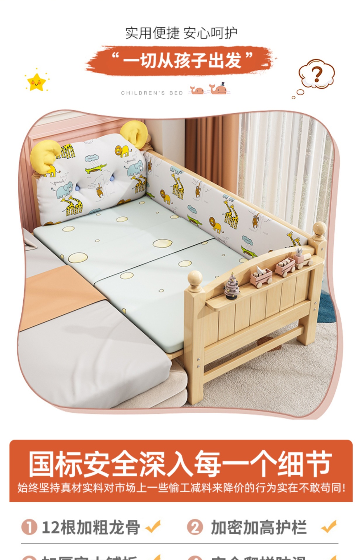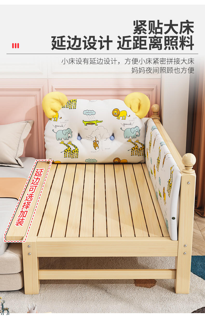 Children s splicing bed solid wood baby bed with guardrail can be ordered baby bed widened bedside boy girl princess bed