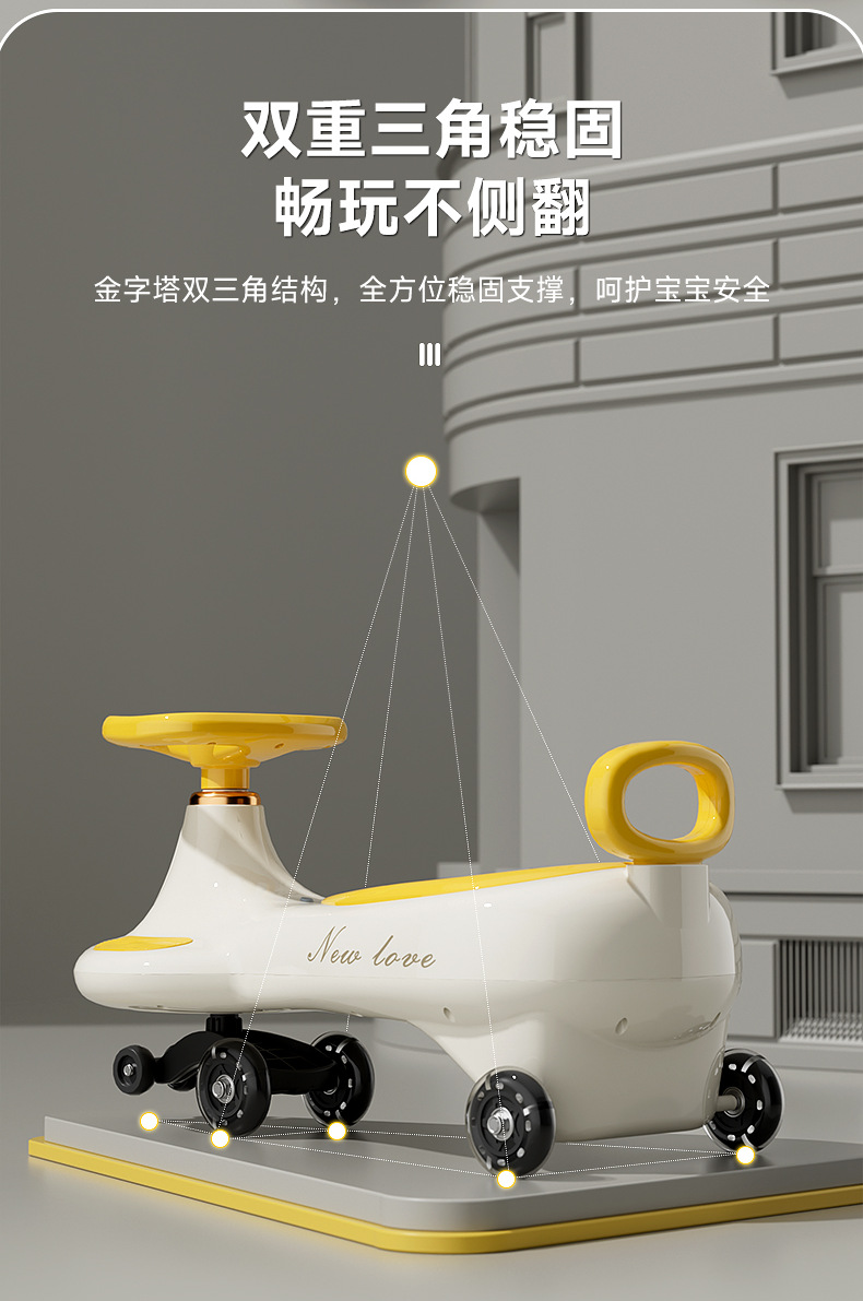 Children s swing car 2 8 years old boys and girls baby yo car anti flip swing car mute universal wheel Walker