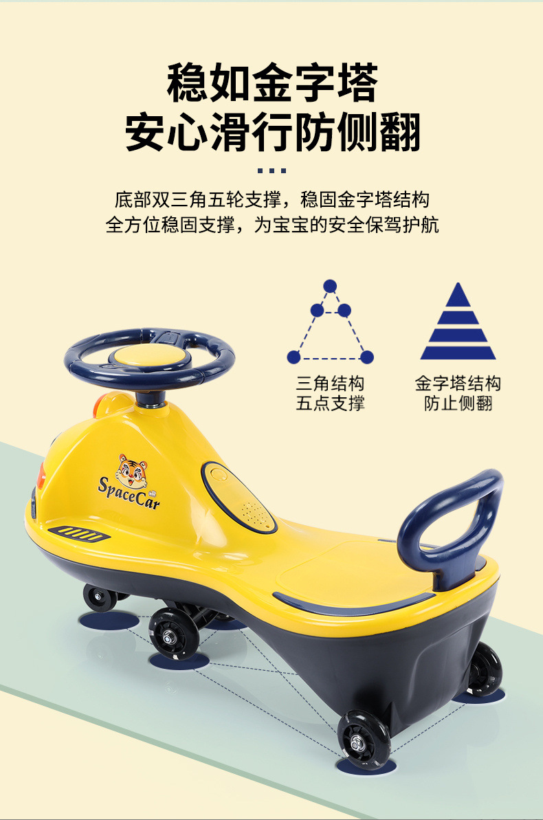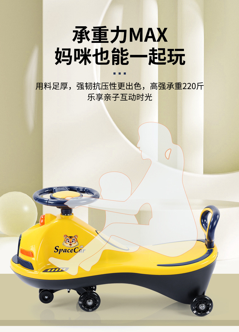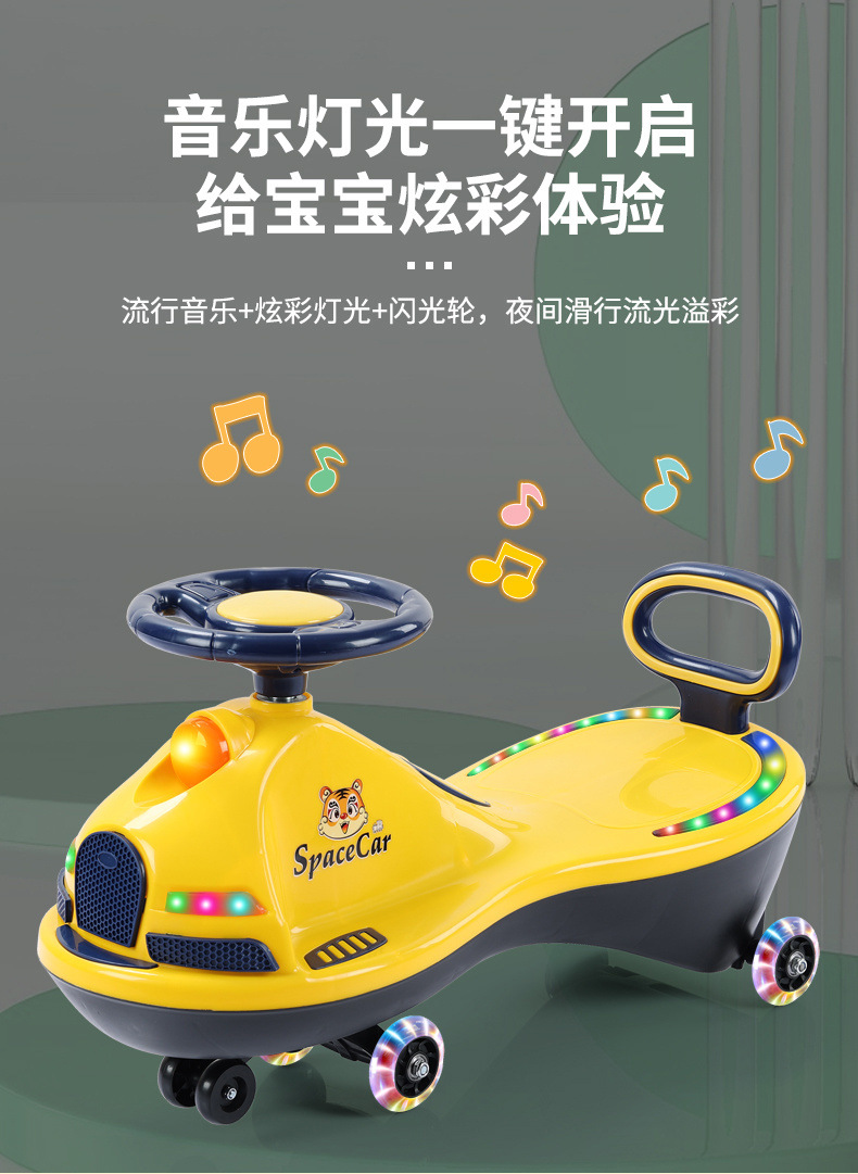 Children s swing car anti rollover adult can sit with music slide car hand push universal wheel baby play