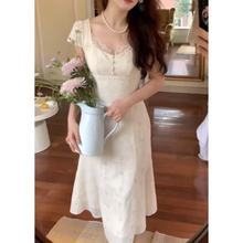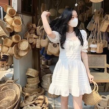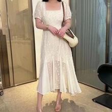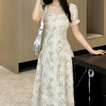Chubby Girl plus size dress retro square collar sweet style 2024 Summer new first love temperament puff sleeve skirt