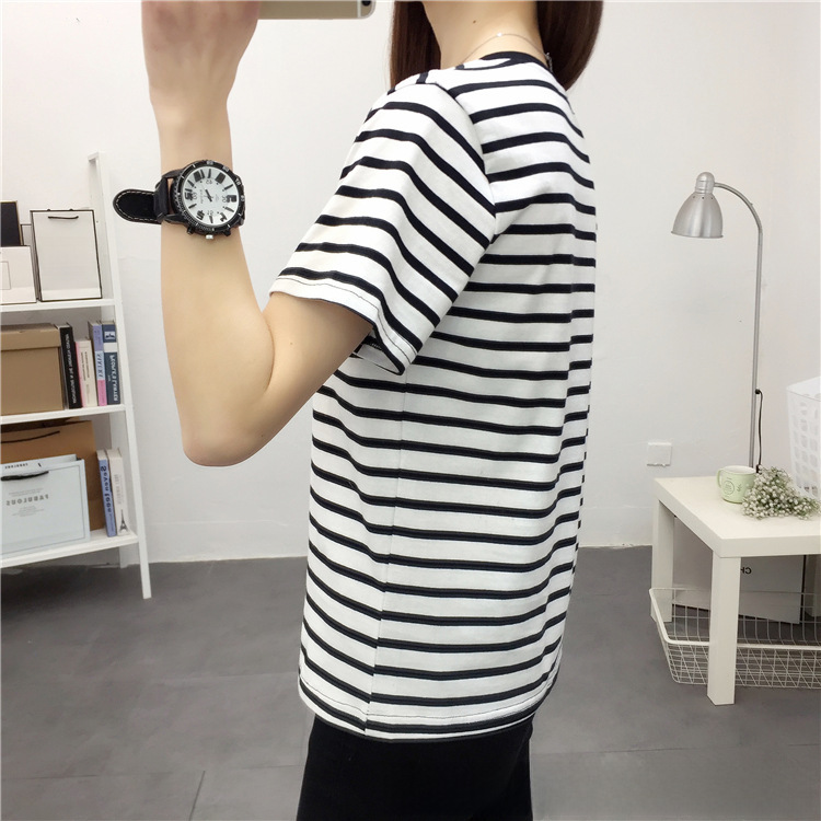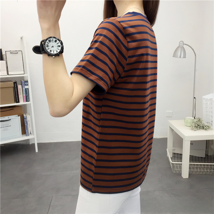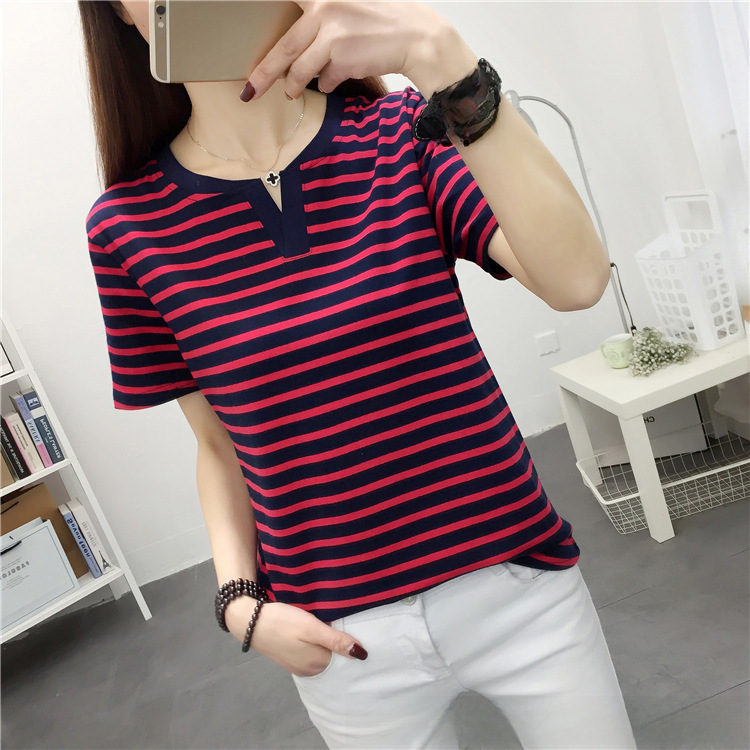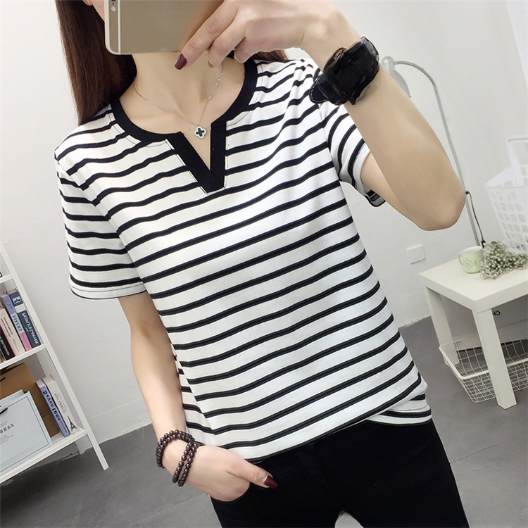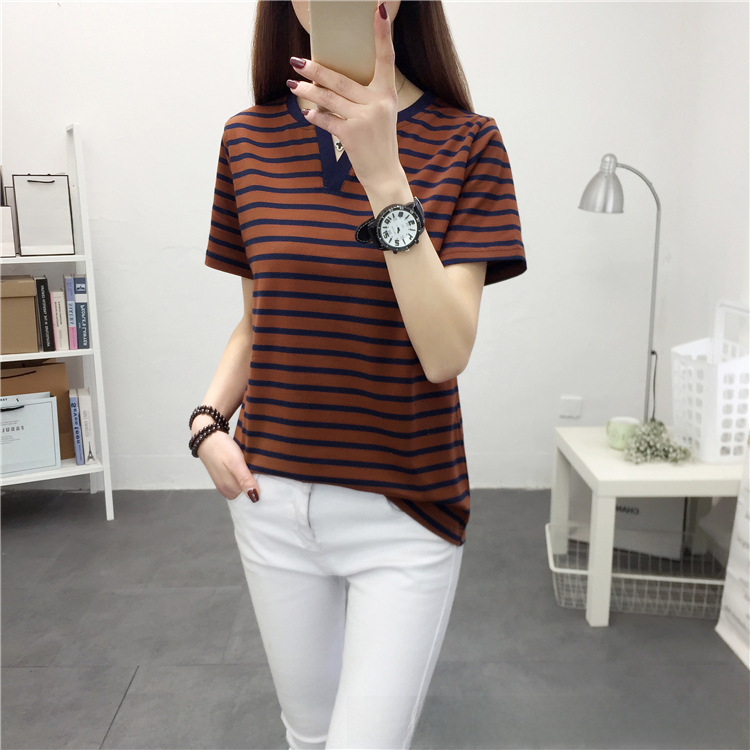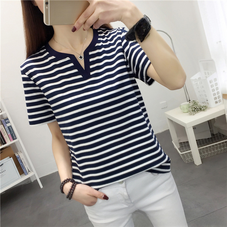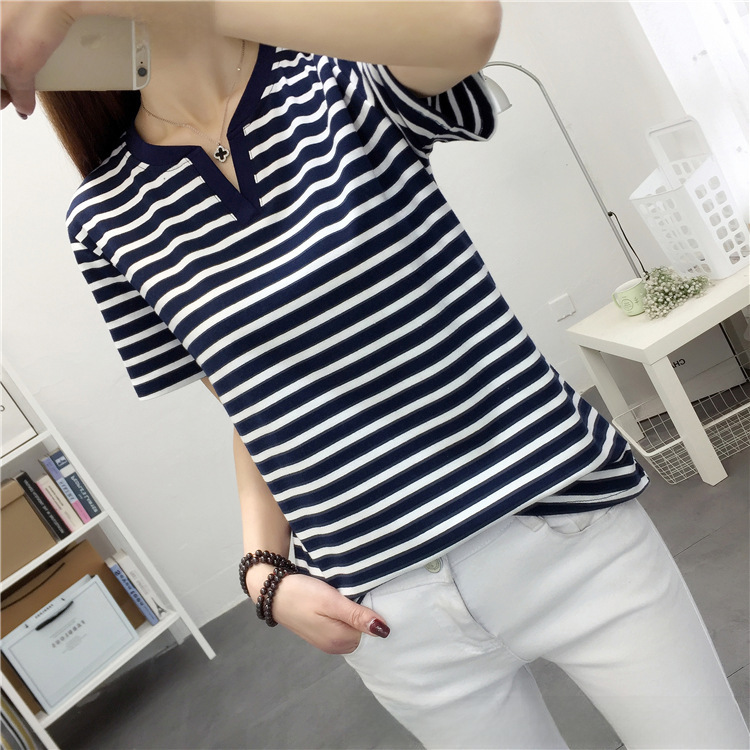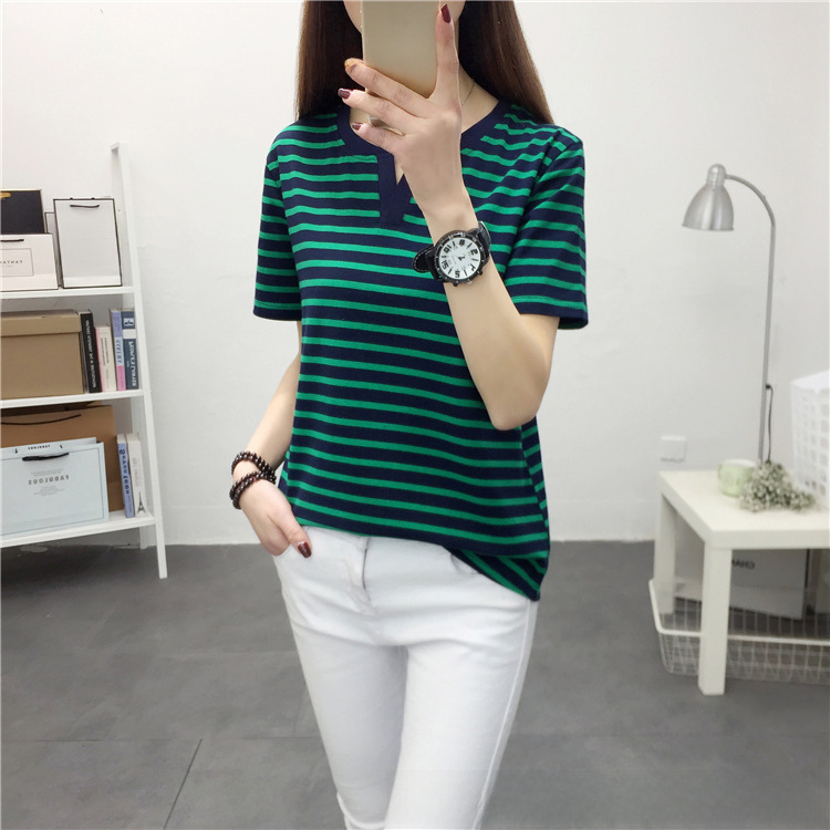 Chubby Girls Striped Short Sleeved T Shirt Women s Extensions Large Size Loose Slimming Half Sleeved T Shirt Cotton Casual V Neck Top