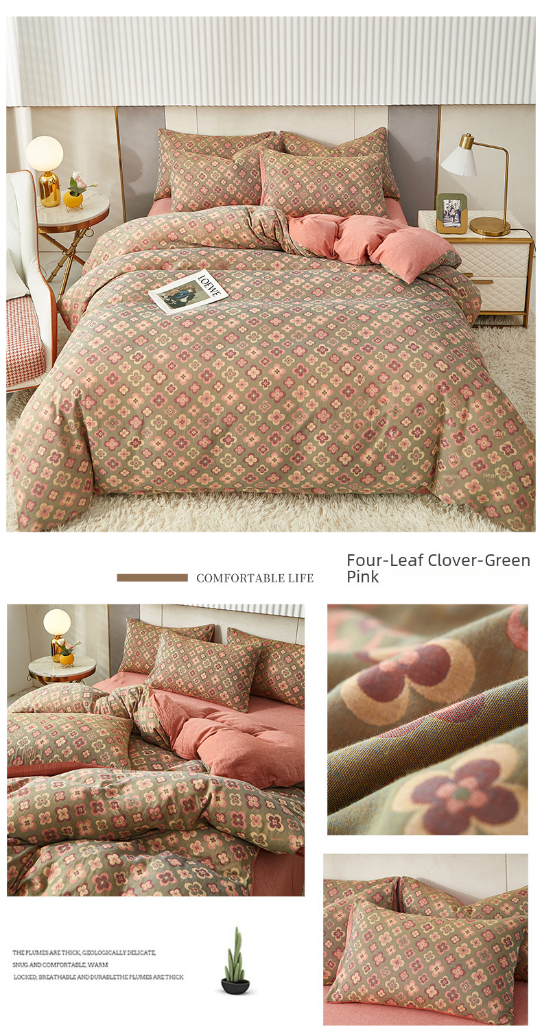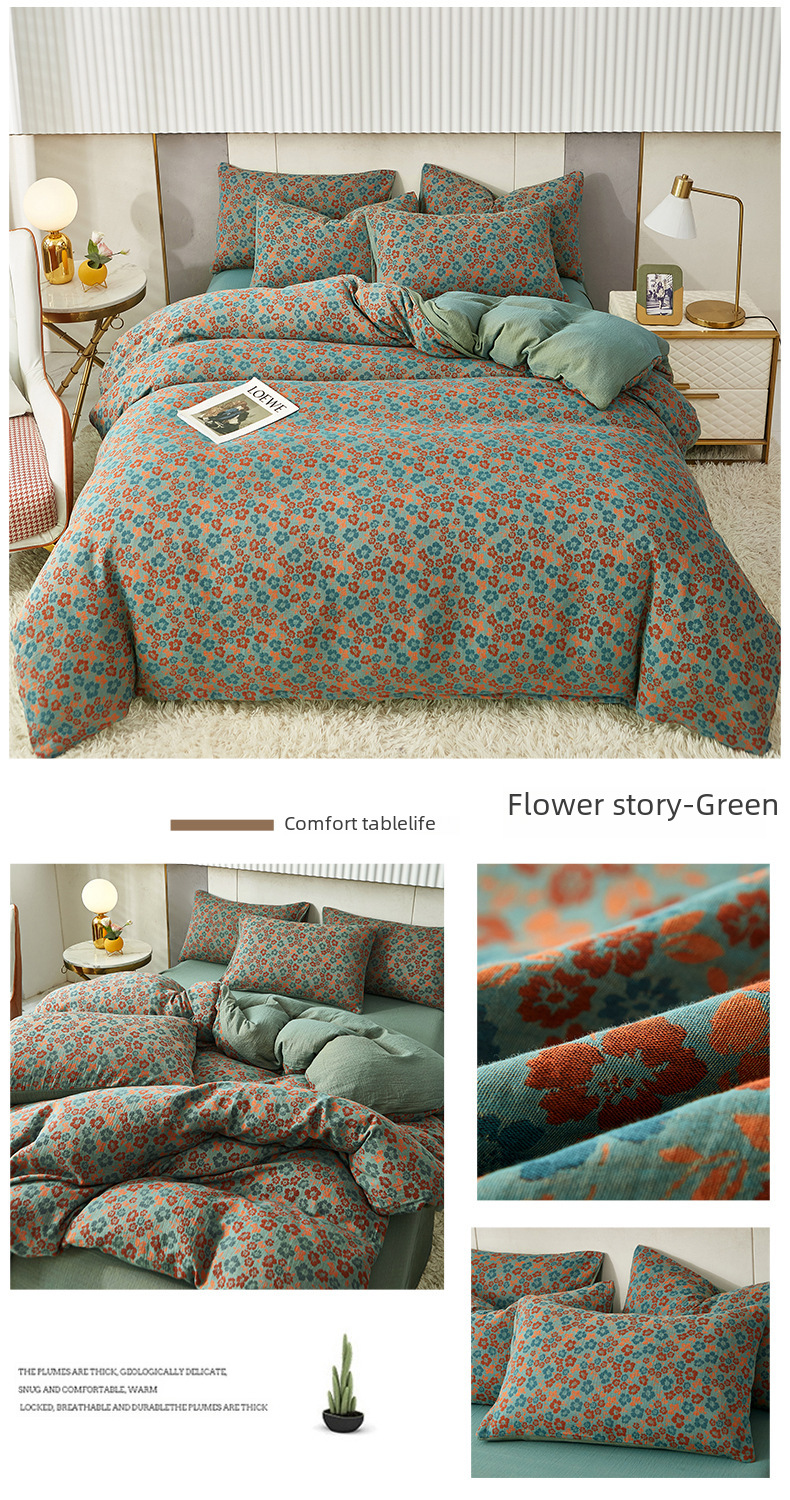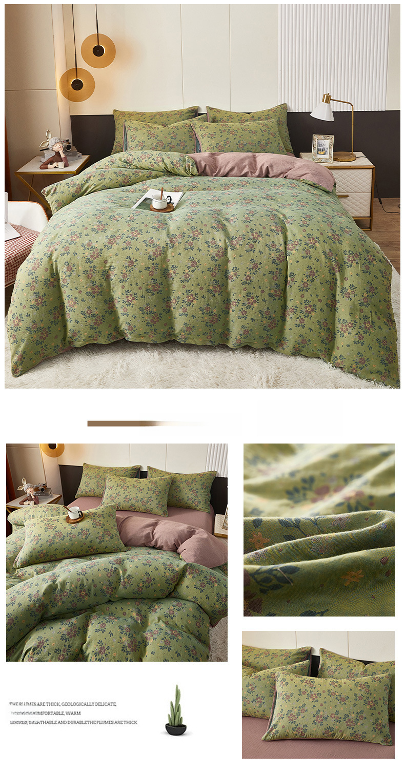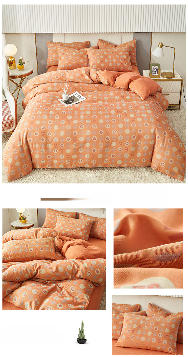 Class A cotton double layer gauze four piece set cotton yarn skin friendly nude sleeping bed sheet quilt cover ins Nordic style jacquard four seasons